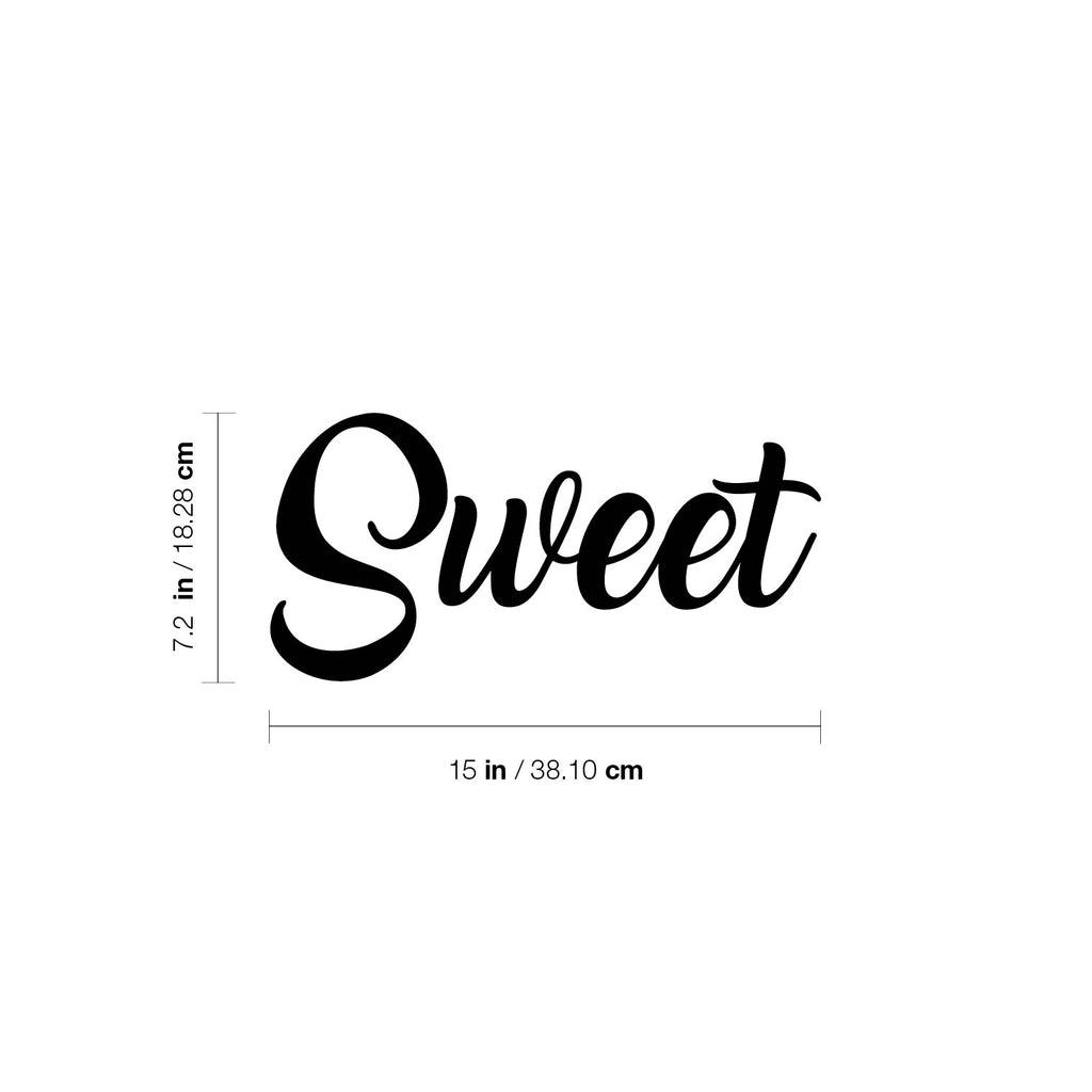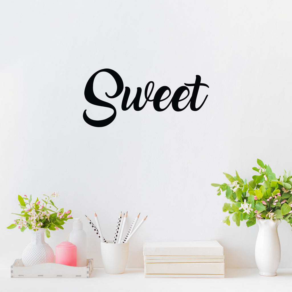 This awesome cute & motivational decal quote "Sweet"; is the perfect touch for your home or school. Use it for your living room; playroom; kids room or anywhere you want to bring some extra cute decoration. It's a vinyl sticker that is easy to put on any smooth and dry surface. Our modern designs don't just brighten up the room; but brighten up the day. Using top of the line vinyl across all of our production allows us to be the leaders in quality and design.