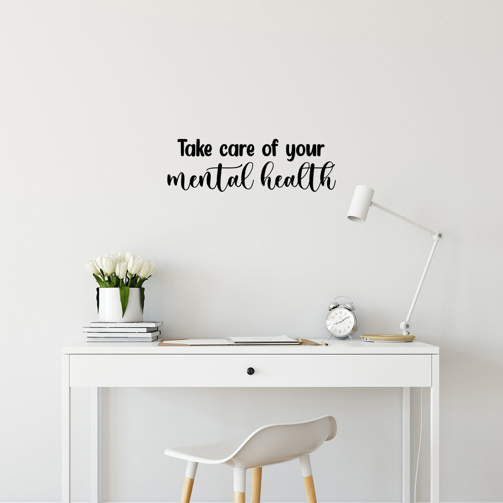 This awesome decal quote "Take Care Of Your Mental Health"; is the perfect touch for your home or work. Use it for your dorm room; home office or anywhere you want to bring some extra decoration. It's a vinyl sticker that is easy to put on any smooth and dry surface. Our modern designs don't just brighten up the room; but brighten up the day. Using top of the line vinyl across all of our production allows us to be the leaders in quality and design.