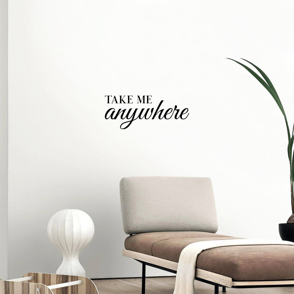 This awesome inspirational & positive decal quote "Take Me Anywhere"; is the perfect touch for your home or school. Use it for your living room; playroom; kids room or anywhere you want to bring some extra positive decoration. It's a vinyl sticker that is easy to put on any smooth and dry surface. Our modern designs don't just brighten up the room; but brighten up the day. Using top of the line vinyl across all of our production allows us to be the leaders in quality and design.