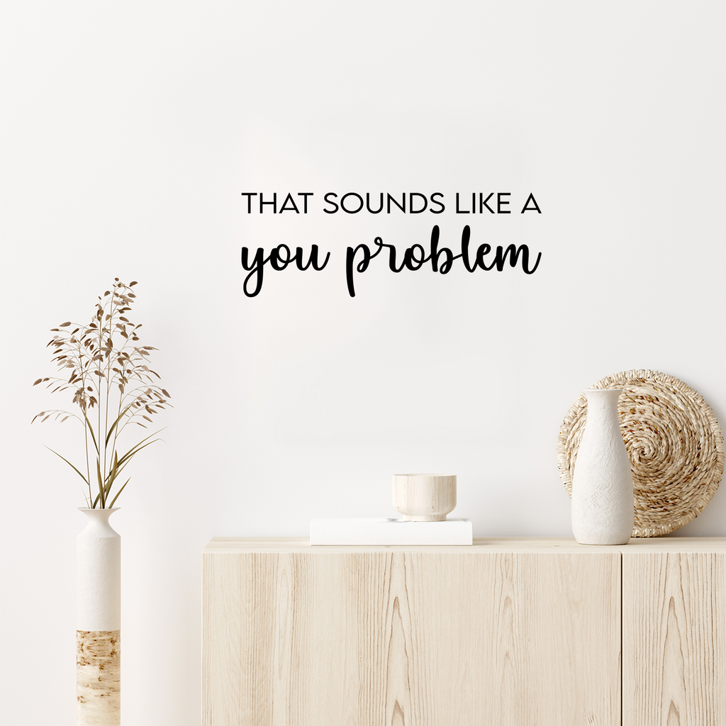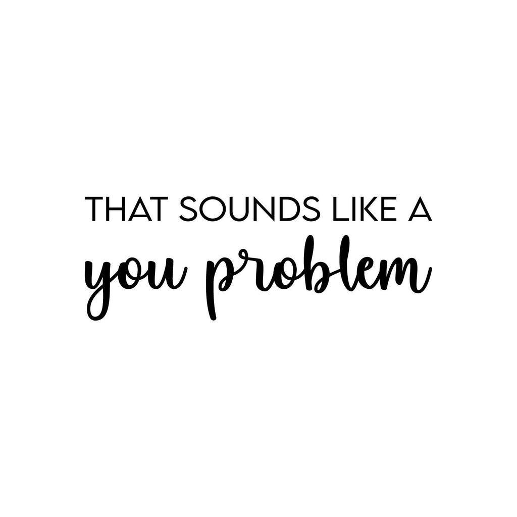 This awesome funny & sarcastic decal quote "That Sounds Like A You Problem"; is the perfect touch for your home or office. Use it for your business; coffee shop; bathroom or anywhere you want to bring some extra inspirational decoration. It's a vinyl sticker that is easy to put on any smooth and dry surface. Our modern designs don't just brighten up the room; but brighten up the day. Using top of the line vinyl across all of our production allows us to be the leaders in quality and design.