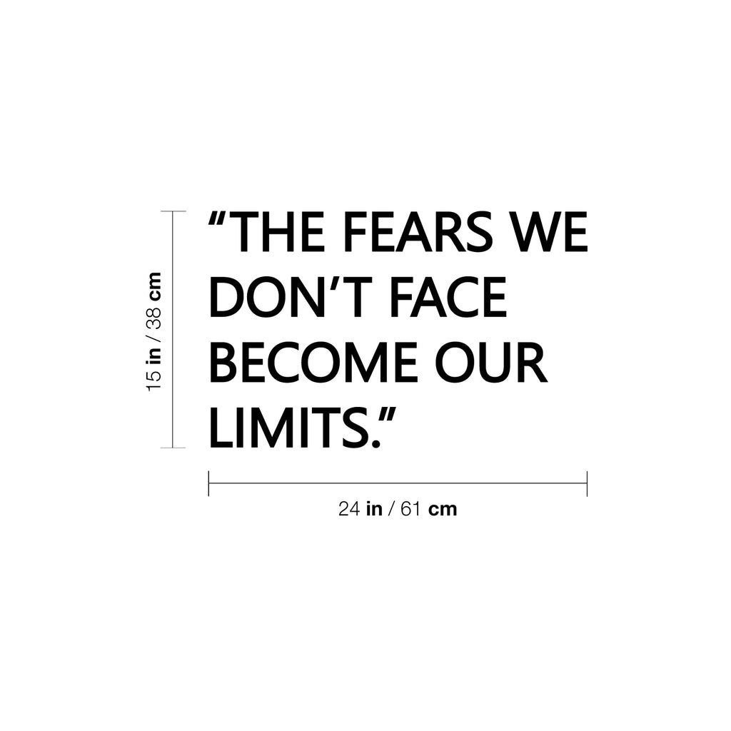 This awesome positive decal quote "The Fears We Don't Face Become Our Limits"; is the perfect touch for your home. Use it for your office; fitness center; storefront or anywhere you want to bring some extra positive decoration. It's a vinyl sticker that is easy to put on any smooth and dry surface. Our modern designs don't just brighten up the room; but brighten up the day. Using top of the line vinyl across all of our production allows us to be the leaders in quality and design.