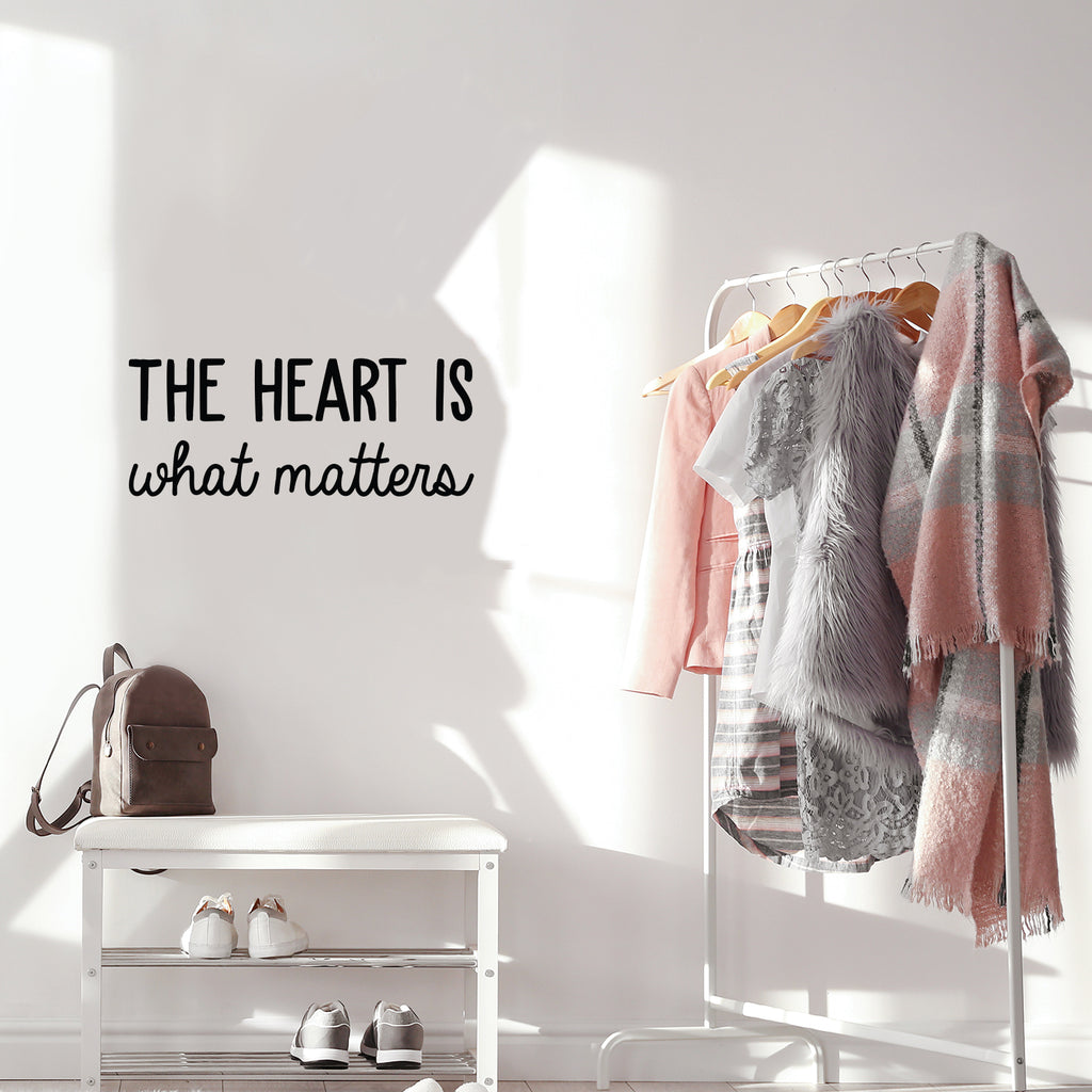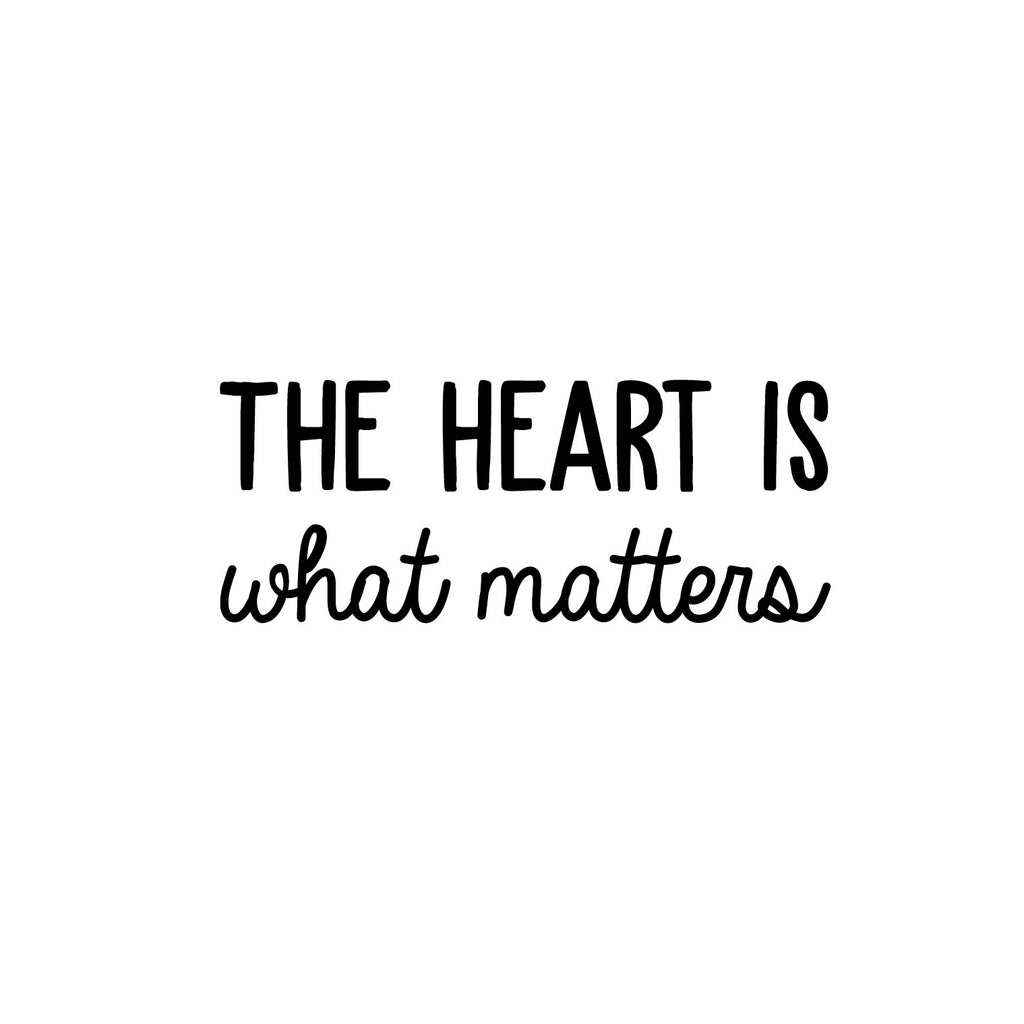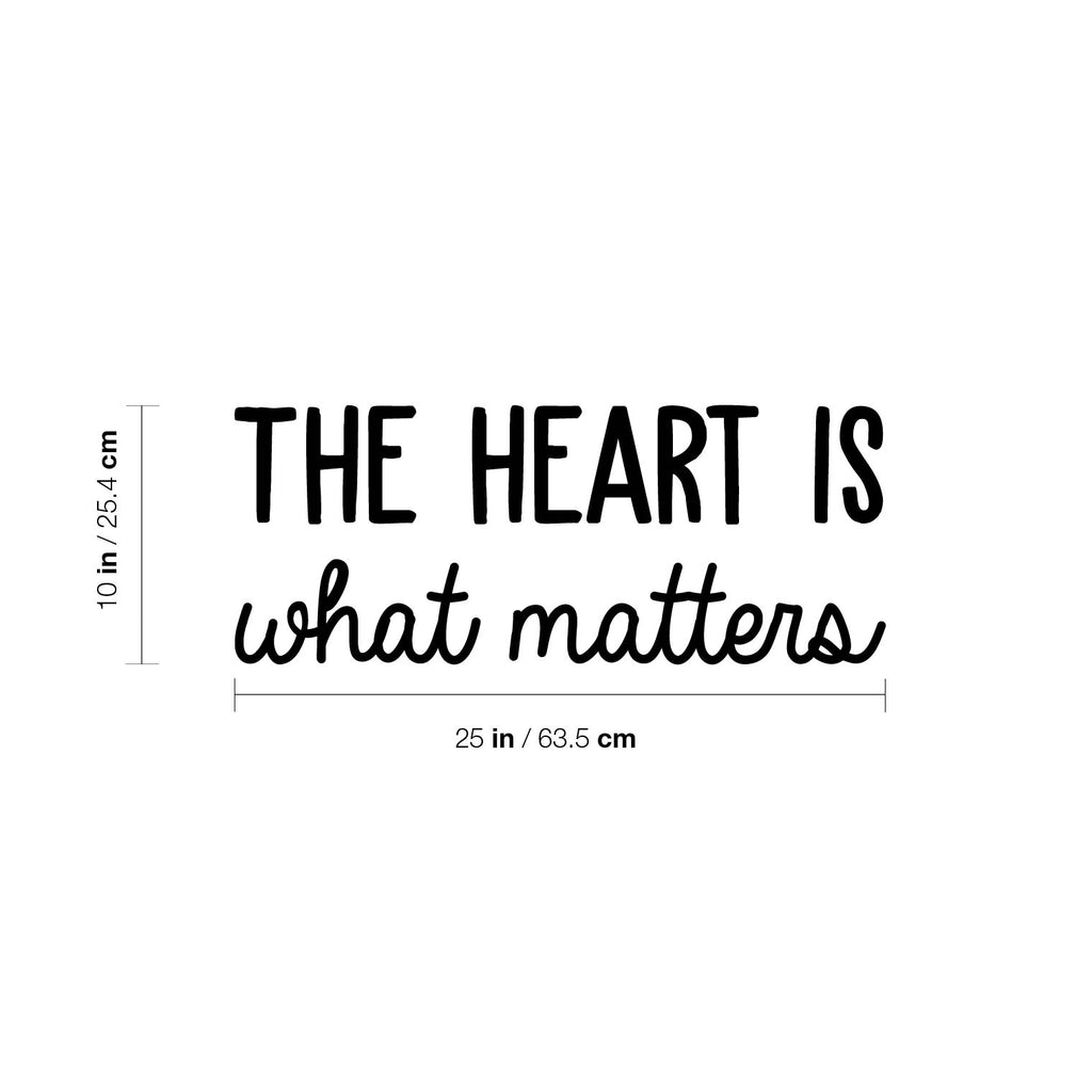 This great decal quote "The Heart Is What Matters"; is the perfect touch for your home. Use it for your makeup area; dorm room or anywhere you want to bring some extra decoration. It's a vinyl sticker that is easy to put on any smooth and dry surface. Our modern designs don't just brighten up the room; but brighten up the day. Using top of the line vinyl across all of our production allows us to be the leaders in quality and design.
