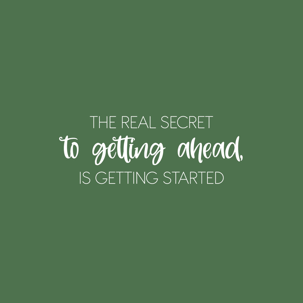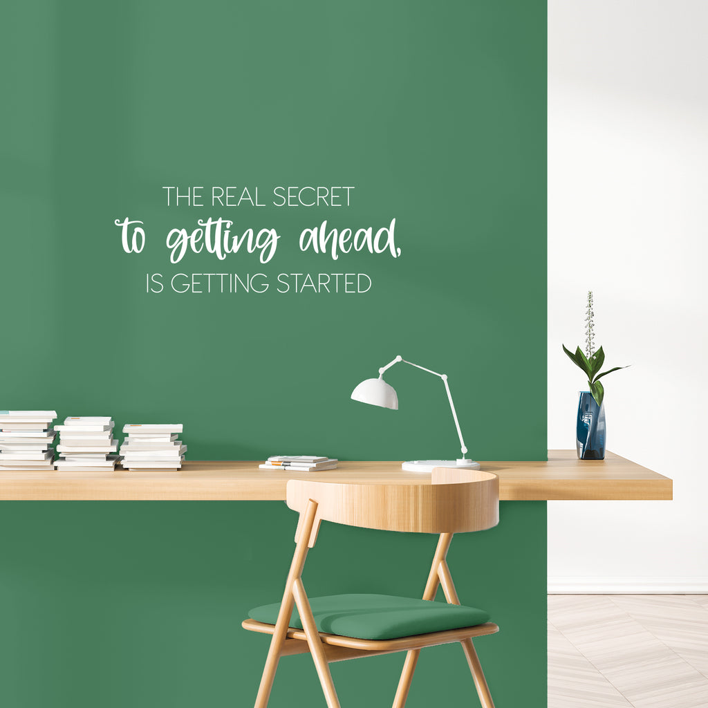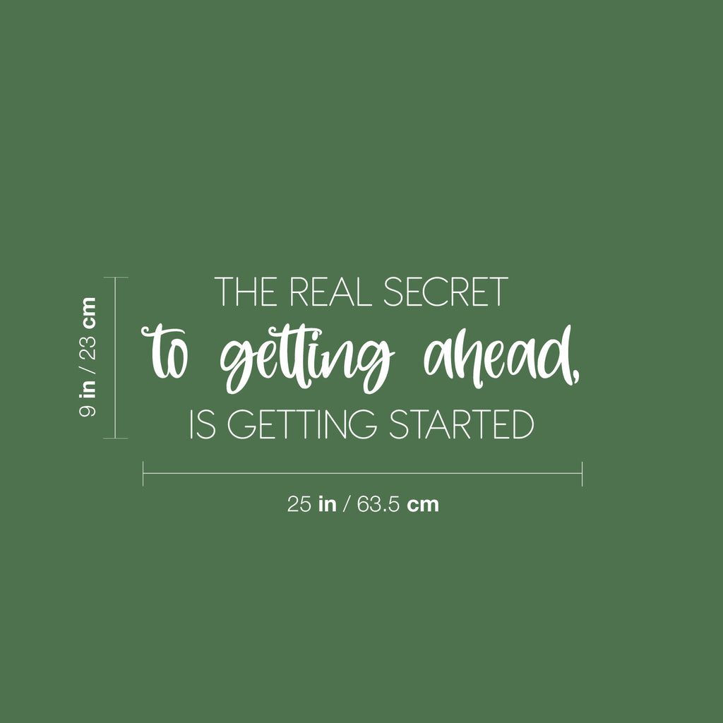 This awesome inspirational decal quote "The Real Secret To Getting Ahead; Is Getting Started"; is the perfect touch for your home or classroom. Use it for your home school; living room; office or anywhere you want to bring some extra decoration. It's a vinyl sticker that is easy to put on any smooth and dry surface. Our modern designs don't just brighten up the room; but brighten up the day. Using top of the line vinyl across all of our production allows us to be the leaders in quality and design.