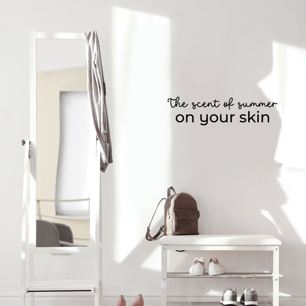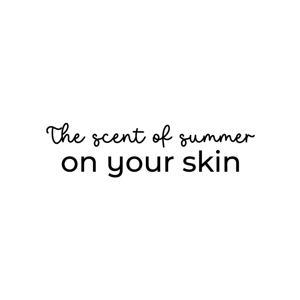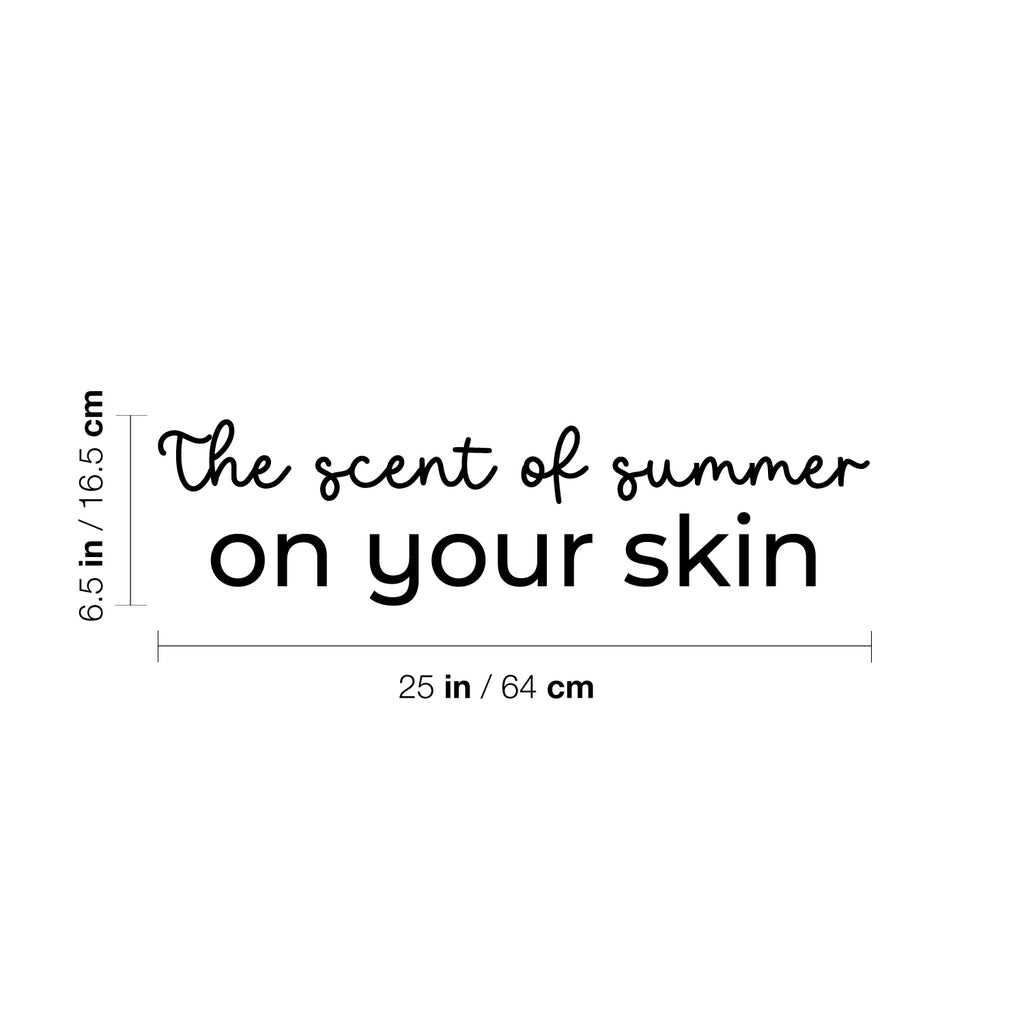 This awesome cute decal quote "The Scent Of Summer On Your Skin"; is the perfect touch for your home or office. Use it for your living room; boutique; beauty saloon or anywhere you want to bring some extra cute decoration. It's a vinyl sticker that is easy to put on any smooth and dry surface. Our modern designs don't just brighten up the room; but brighten up the day. Using top of the line vinyl across all of our production allows us to be the leaders in quality and design.