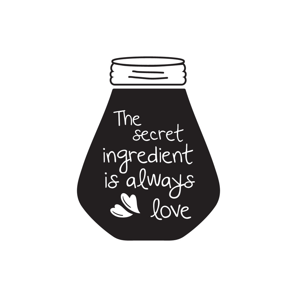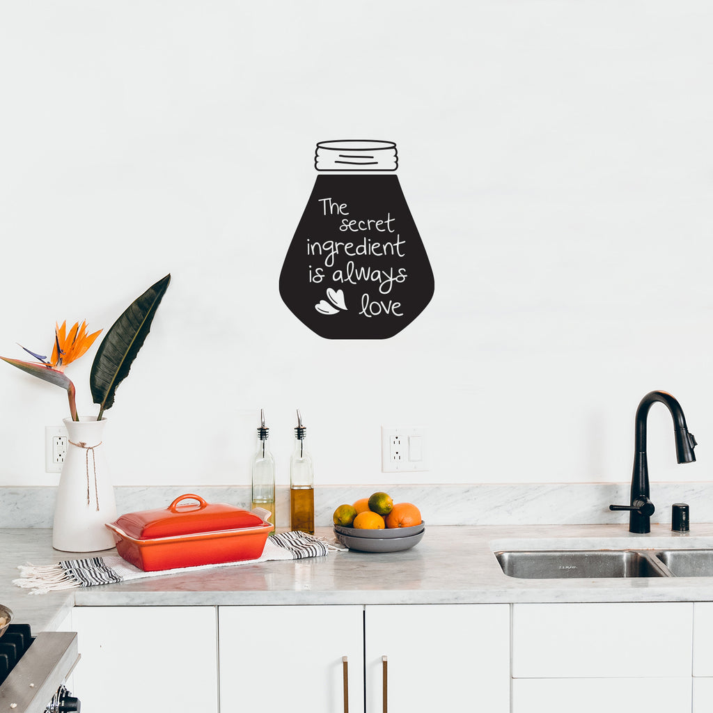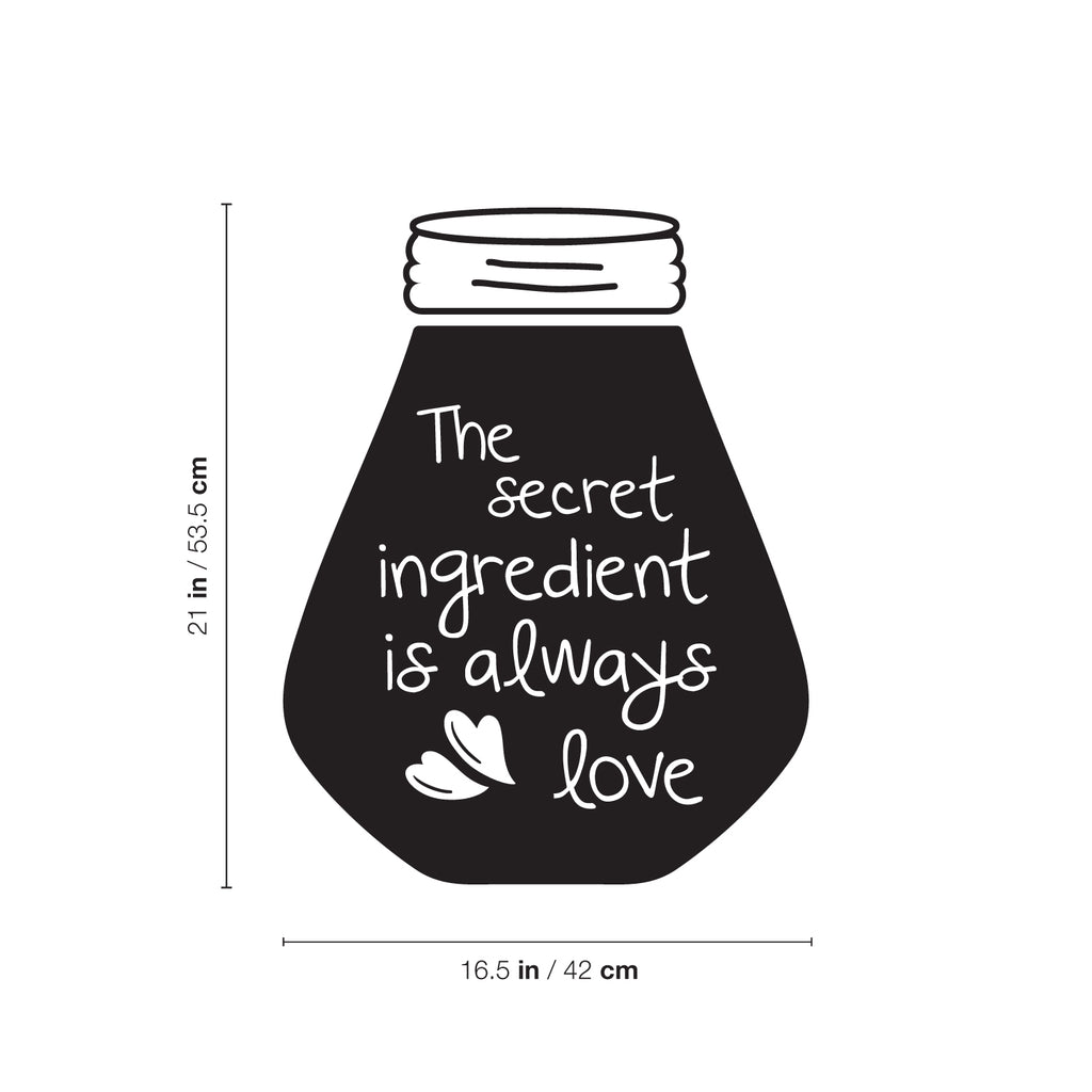 This decal quote "The Secret Ingredient Is Always Love"; is the perfect touch for your home or shop. Use it for your dining room; kitchen or anywhere you want to bring some extra decoration. It's a vinyl sticker that is easy to put on any smooth and dry surface. Our modern designs don't just brighten up the room; but brighten up the day. Using top of the line vinyl across all of our production allows us to be the leaders in quality and design.