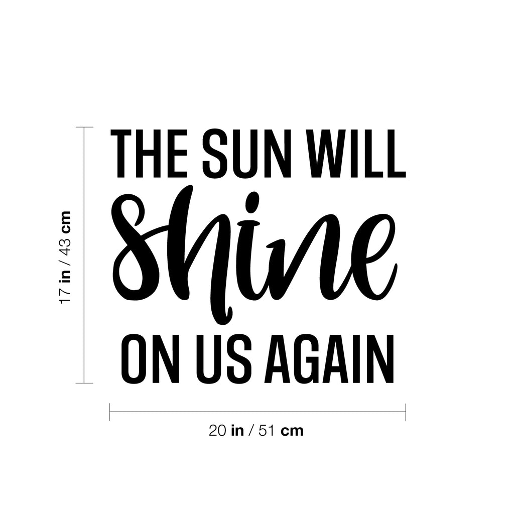 This awesome motivational decal quote "The Sun Will Shine On Us Again"; is the perfect touch for your home or school. Use it for your living room; closet; bathroom or anywhere you want to bring some extra cute decoration. It's a vinyl sticker that is easy to put on any smooth and dry surface. Our modern designs don't just brighten up the room; but brighten up the day. Using top of the line vinyl across all of our production allows us to be the leaders in quality and design.