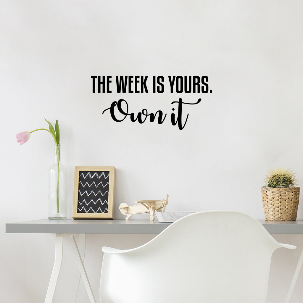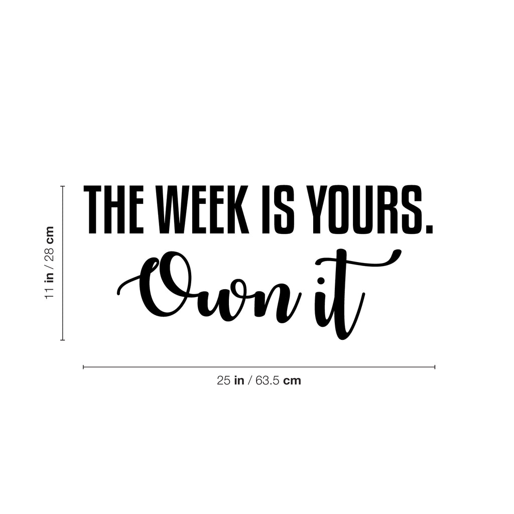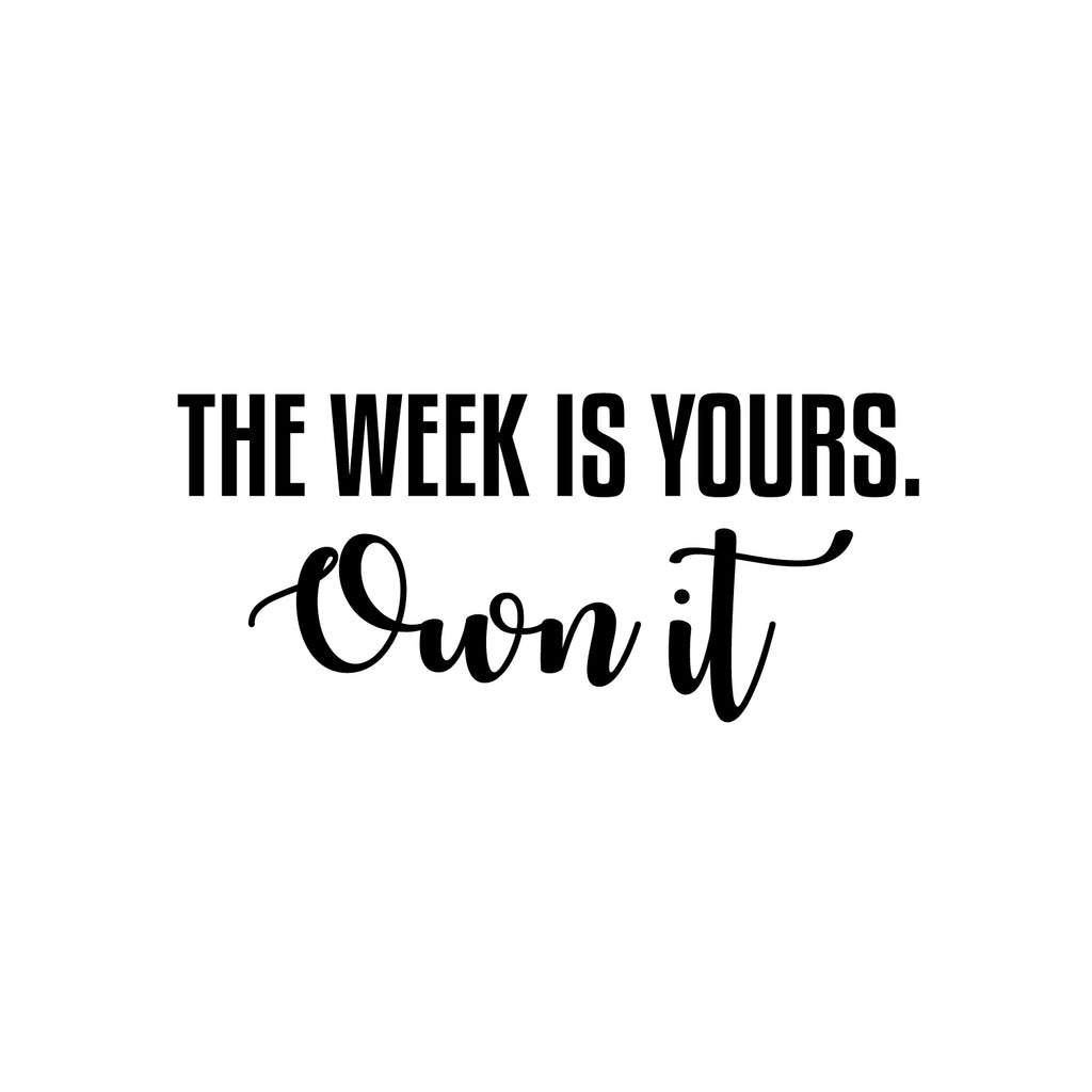 This motivational decal quote "The Week Is Yours Own It"; is the perfect touch for your home. Use it for your home; school or anywhere you want to bring some extra decoration. It's a vinyl sticker that is easy to put on any smooth and dry surface. Our modern designs don't just brighten up the room; but brighten up the day. Using top of the line vinyl across all of our production allows us to be the leaders in quality and design.