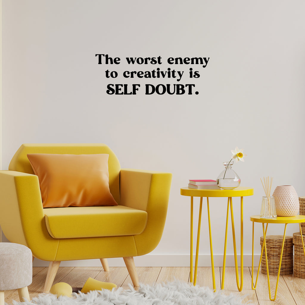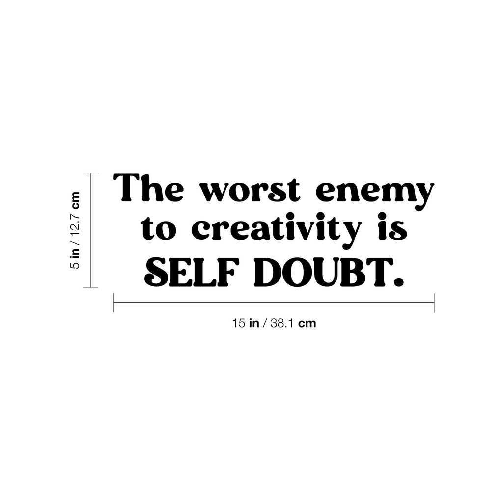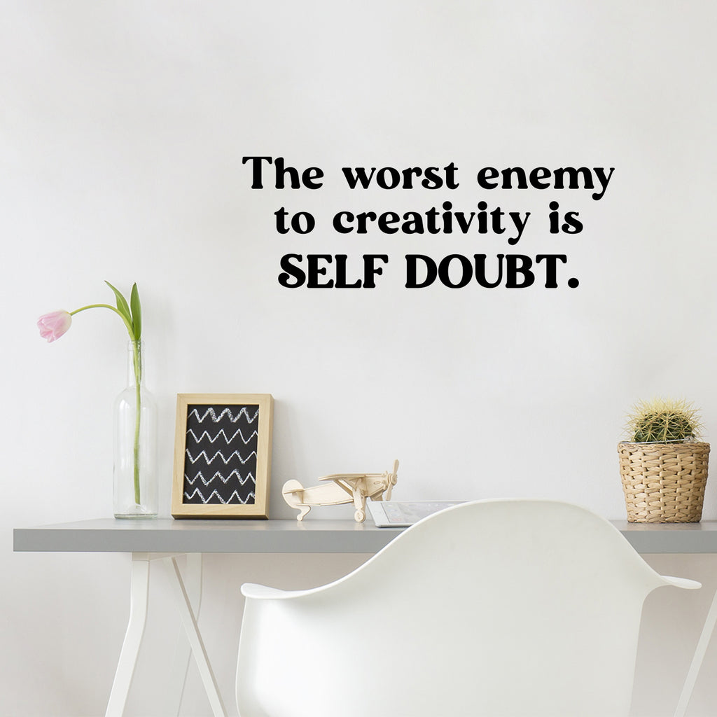 This motivational & optimistic decal quote "The Worst Enemy To Creativity Is Self Doubt"; is the perfect touch for your home or school. Use it for your living room; playroom; classroom or anywhere you want to bring some extra cute decoration. It's a vinyl sticker that is easy to put on any smooth and dry surface. Our modern designs don't just brighten up the room; but brighten up the day. Using top of the line vinyl across all of our production allows us to be the leaders in quality and design.
