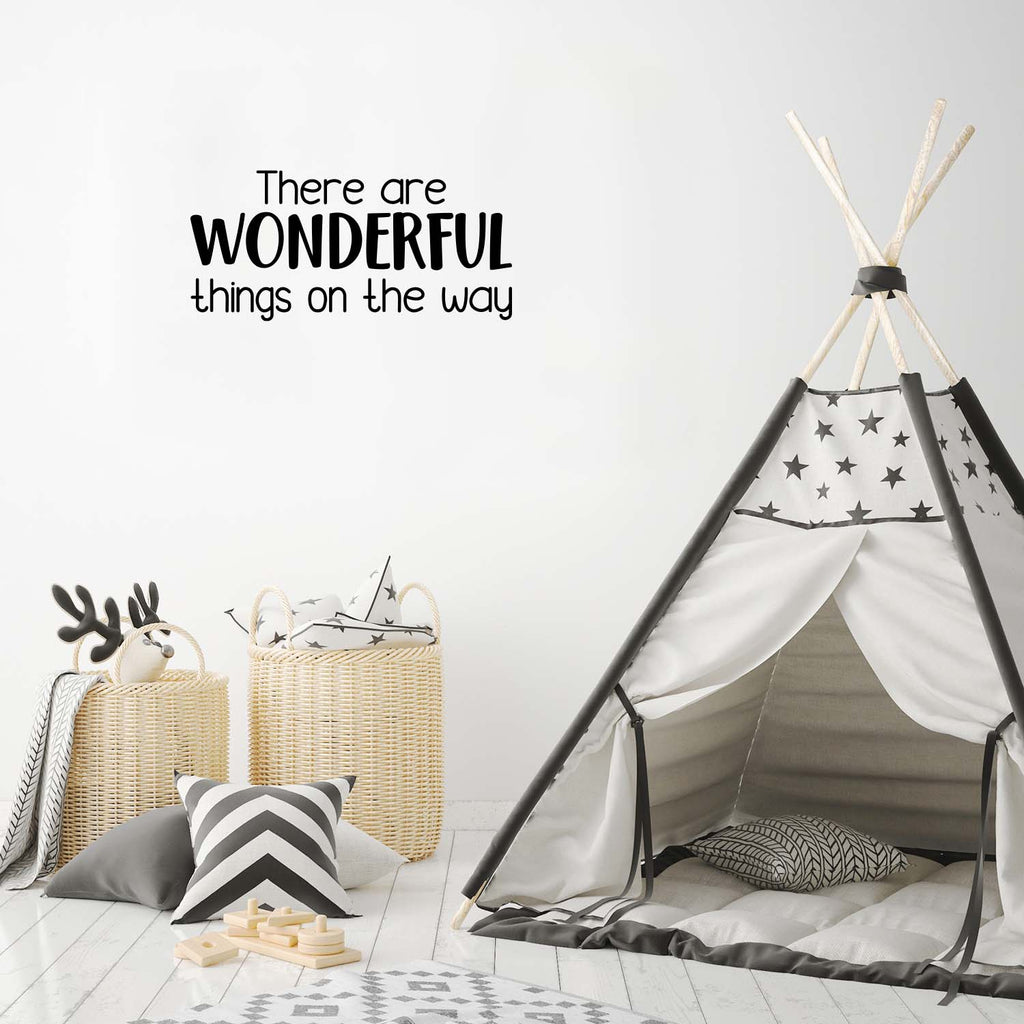 This decal quote "There Are Wonderful Things On The Way" is the perfect touch for your home or school. Use it for your bedroom; playroom; kids room or anywhere you want to bring some extra cute decoration. It's a vinyl sticker that is easy to put on any smooth and dry surface. Our modern designs don't just brighten up the room; but brighten up the day. Using top of the line vinyl across all of our production allows us to be the leaders in quality and design.