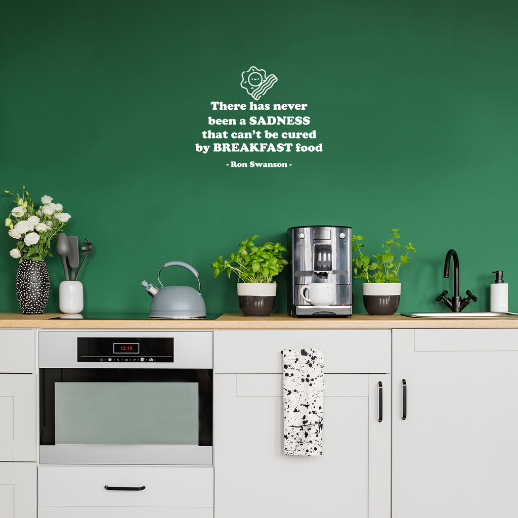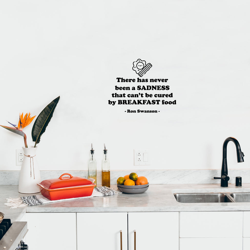 This awesome funny decal quote "There Has Never Been A Sadness That Can't Be Cured By BREAKFAST Food"; is the perfect touch for your home or restaurant. Use it for your kitchen; coffee shop; storefront or anywhere you want to bring some extra decoration. It's a vinyl sticker that is easy to put on any smooth and dry surface. Our modern designs don't just brighten up the room; but brighten up the day. Using top of the line vinyl across all of our production allows us to be the leaders in quality and design.