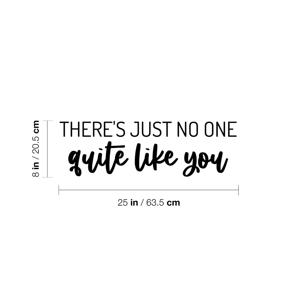 This great decal quote "There's Just No One Quite Like You"; is the perfect touch for your home. Use it for your makeup area; dorm room or anywhere you want to bring some extra decoration. It's a vinyl sticker that is easy to put on any smooth and dry surface. Our modern designs don't just brighten up the room; but brighten up the day. Using top of the line vinyl across all of our production allows us to be the leaders in quality and design.