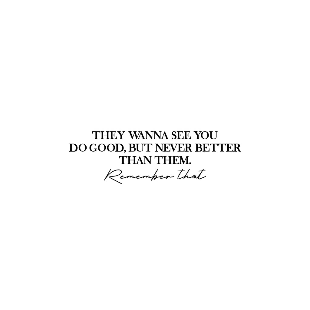 This decal quote "They Wanna See You Do Good But Never Better Than Them"; is the perfect touch for your home. Use it for your dorm room or anywhere you want to bring some extra decoration. It's a vinyl sticker that is easy to put on any smooth and dry surface. Our modern designs don't just brighten up the room; but brighten up the day. Using top of the line vinyl across all of our production allows us to be the leaders in quality and design.