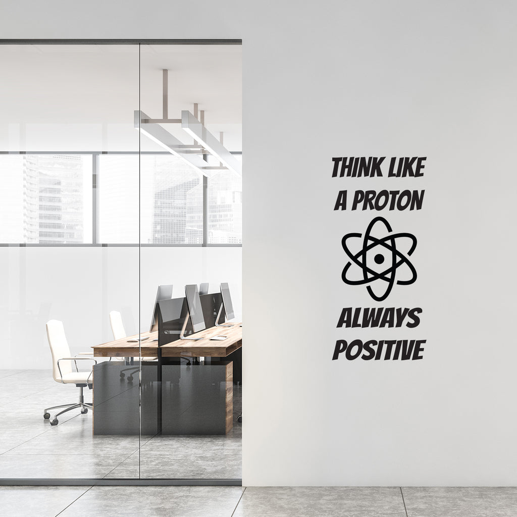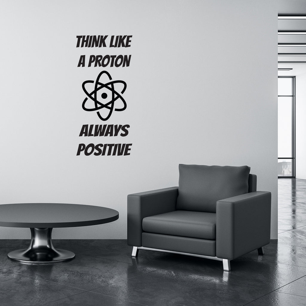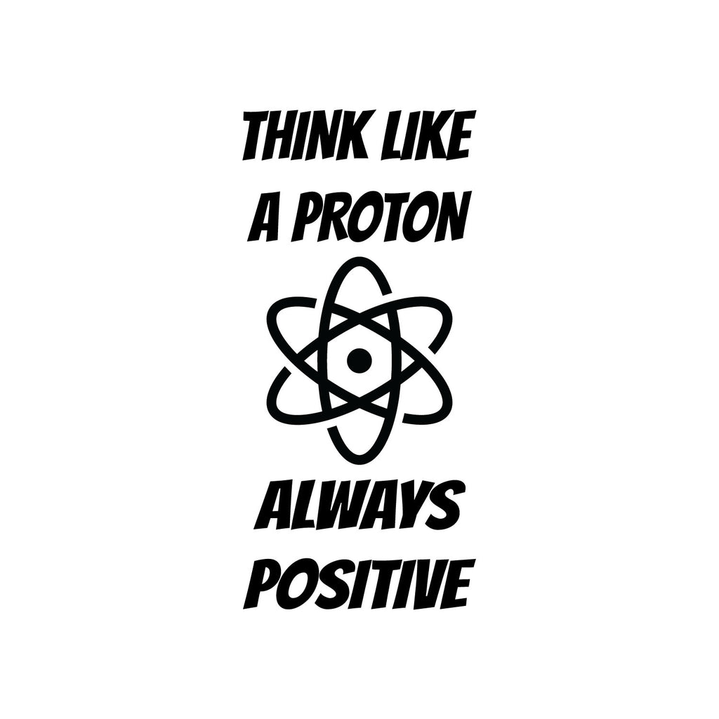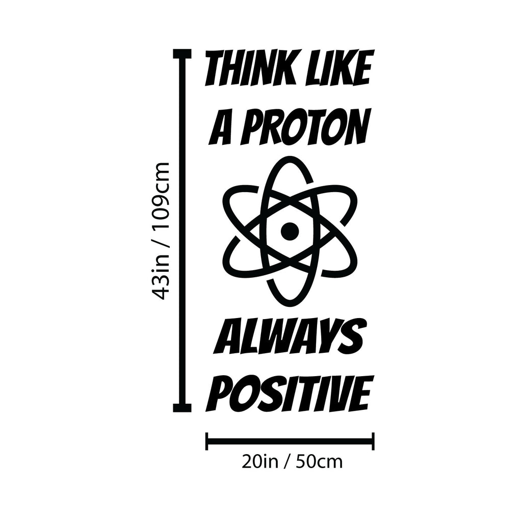 This awesome positive decal quote "Think Like A Proton Always Positive"; is the perfect touch for your home or office. Use it for your bedroom; closet; living room or anywhere you want to bring some extra positive decoration. It's a vinyl sticker that is easy to put on any smooth and dry surface. Our modern designs don't just brighten up the room; but brighten up the day. Using top of the line vinyl across all of our production allows us to be the leaders in quality and design.