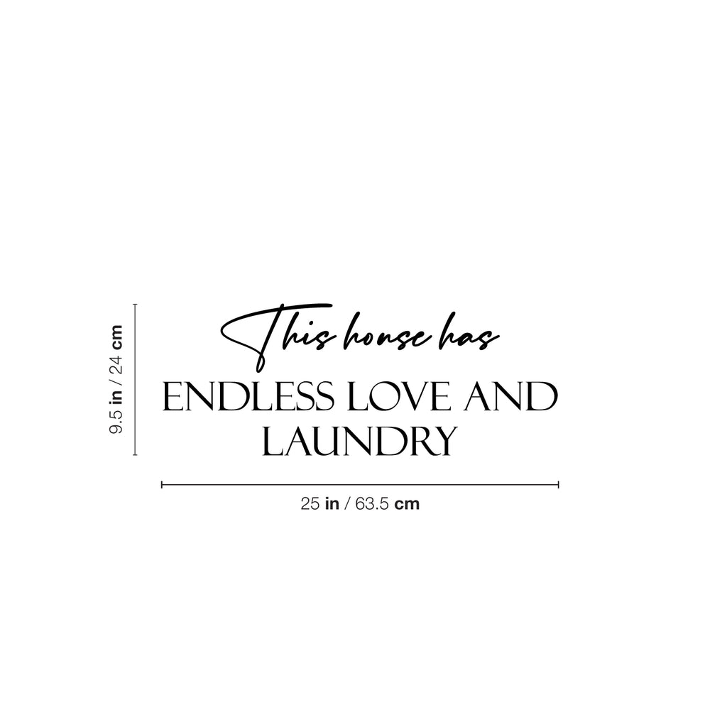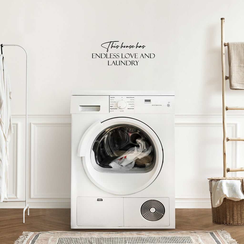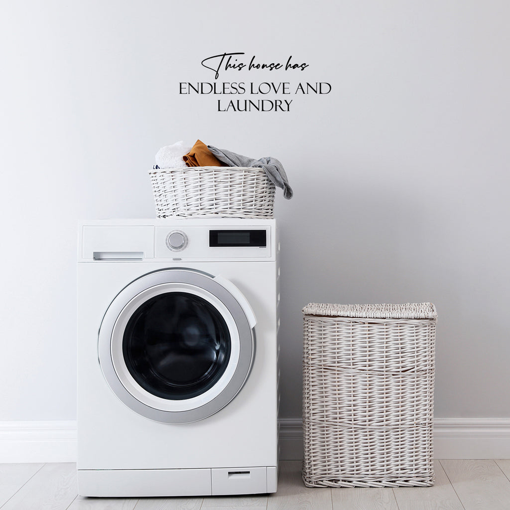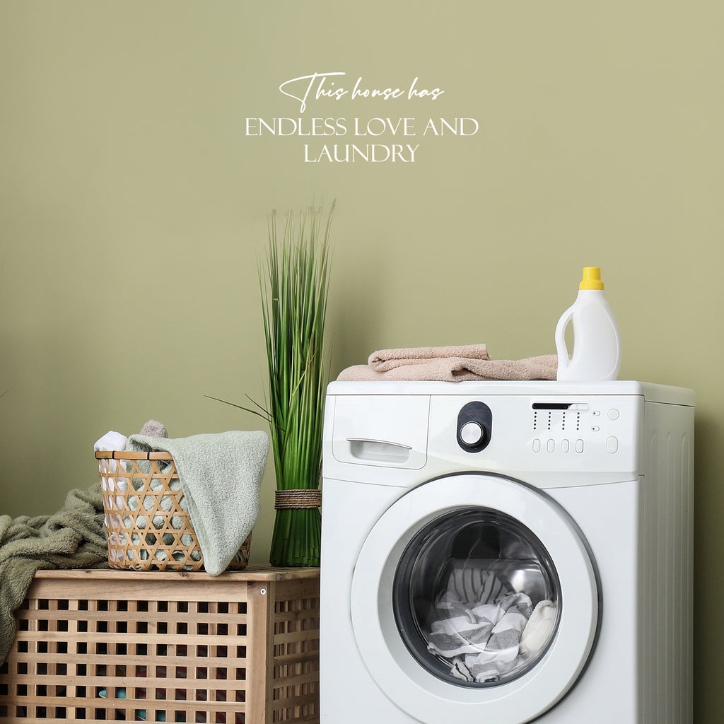 This awesome fun & positive decal quote "This House Has Endless Love And Laundry"; is the perfect touch for your home. Use it for your bathroom; laundry room; washing space or anywhere you want to bring some extra positive decoration. It's a vinyl sticker that is easy to put on any smooth and dry surface. Our modern designs don't just brighten up the room; but brighten up the day. Using top of the line vinyl across all of our production allows us to be the leaders in quality and design.