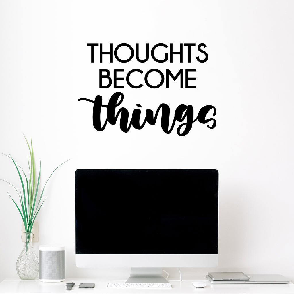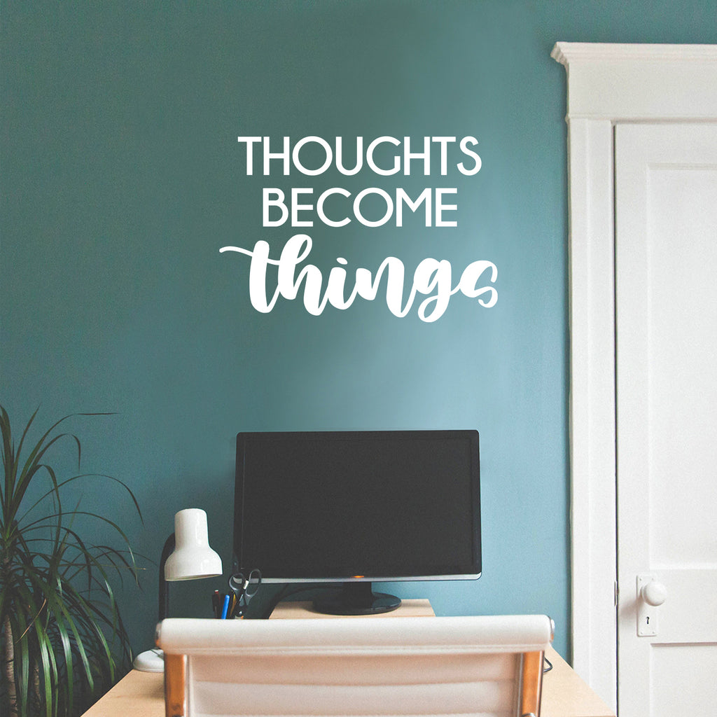 Vinyl Wall Art Decal - Thoughts Become Things - 16.5" x 25" - Modern Cute Inspirational Optimistic Vibes Quote Sticker For Bedroom Living Room Office Business School Classroom Coffee Shop Decor