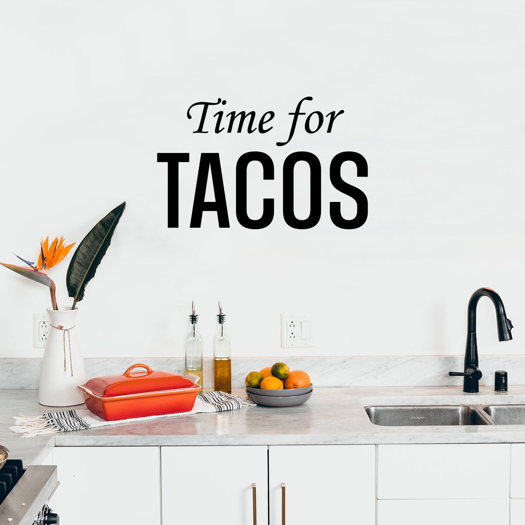 This awesome fun decal quote "Time For Tacos"; is the perfect touch for your home or business. Use it for your kitchen; living room; office kitchenette or anywhere you want to bring some extra cute decoration. It's a vinyl sticker that is easy to put on any smooth and dry surface. Our modern designs don't just brighten up the room; but brighten up the day. Using top of the line vinyl across all of our production allows us to be the leaders in quality and design.