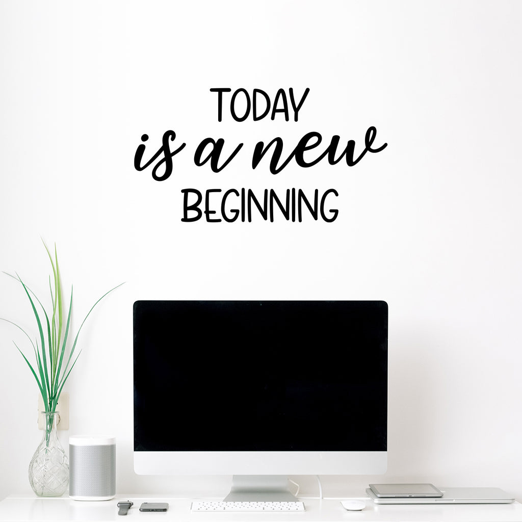 This awesome positive & motivating decal quote "Today Is A New Beginning"; is the perfect touch for your office or gym. Use it for your living room; classroom; storefront or anywhere you want to bring some extra positive decoration. It's a vinyl sticker that is easy to put on any smooth and dry surface. Our modern designs don't just brighten up the room; but brighten up the day. Using top of the line vinyl across all of our production allows us to be the leaders in quality and design.