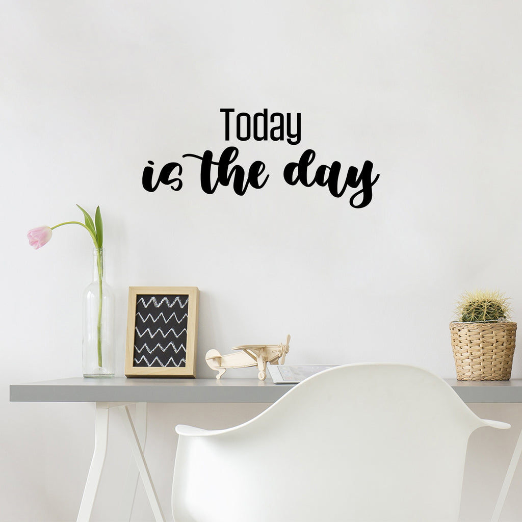 This great decal quote "Today Is The Day"; is the perfect touch for your home. Use it for your kids room; living room or anywhere you want to bring some extra decoration. It's a vinyl sticker that is easy to put on any smooth and dry surface. Our modern designs don't just brighten up the room; but brighten up the day. Using top of the line vinyl across all of our production allows us to be the leaders in quality and design.