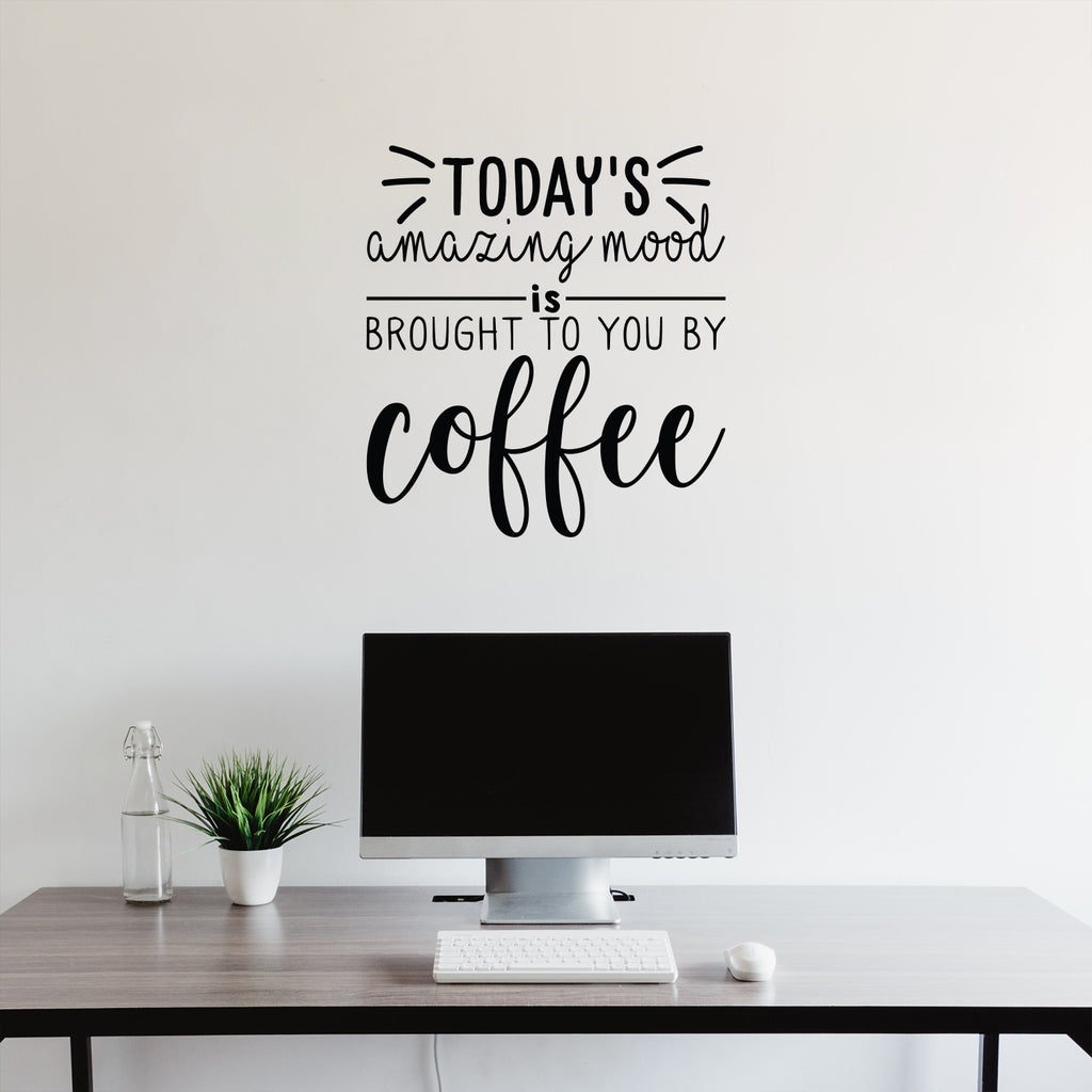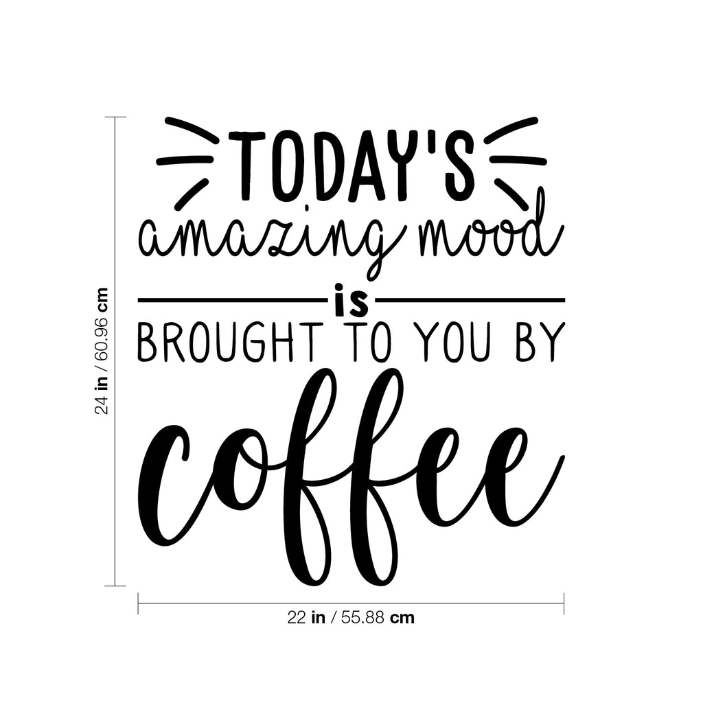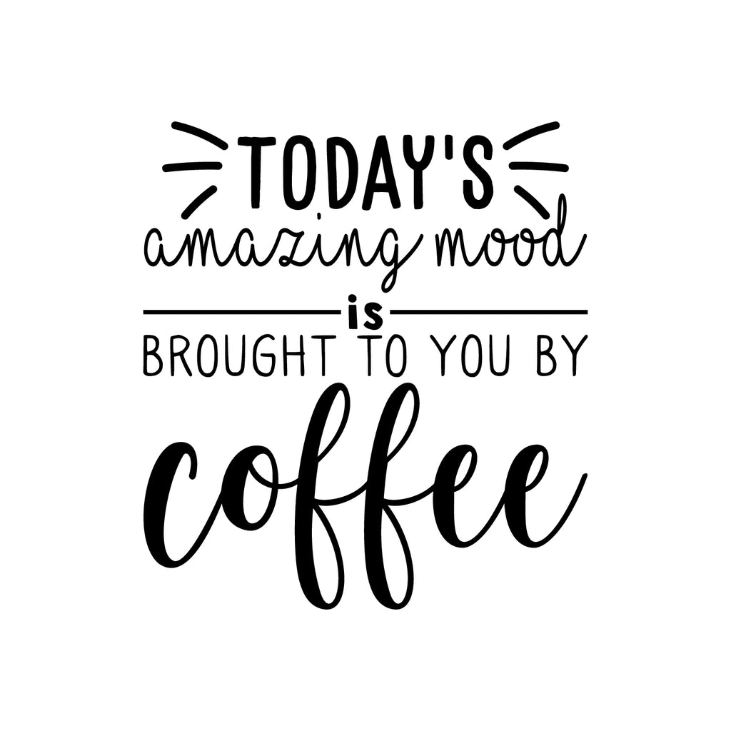 This awesome cute coffee quote "Today's Amazing Mood Is Brought To You By Coffee"; is the perfect touch for your home or coffee shop. Use it for your dining room; kitchen or anywhere you want to bring some extra decoration. It's a vinyl sticker that is easy to put on any smooth and dry surface. Our modern designs don't just brighten up the room; but brighten up the day. Using top of the line vinyl across all of our production allows us to be the leaders in quality and design.