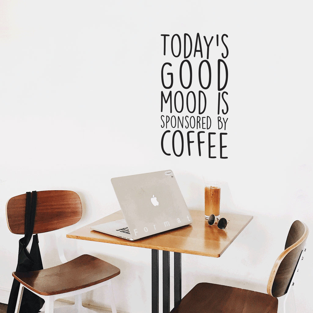 This inspirational "Todays Good Mood Is Sponsored By Coffee" wall art decal is the perfect touch for your home or office. Use it for your bedroom; living room; or anywhere you want to bring some extra decoration. It's a vinyl sticker that is easy to put on almost any smooth and dry surface. Our modern designs don't just brighten up the room; but brighten up the day. Using top of the line vinyl across all of our production allows us to be the leaders in quality and design.