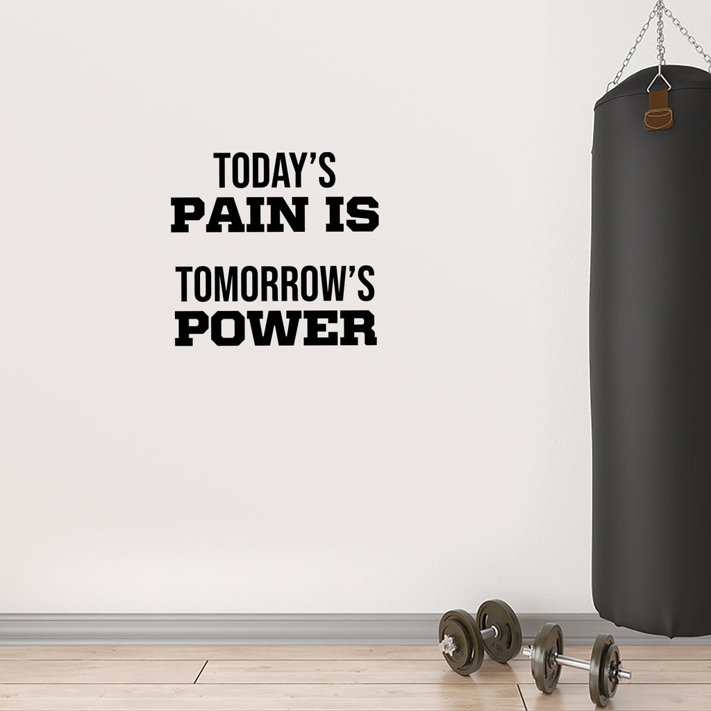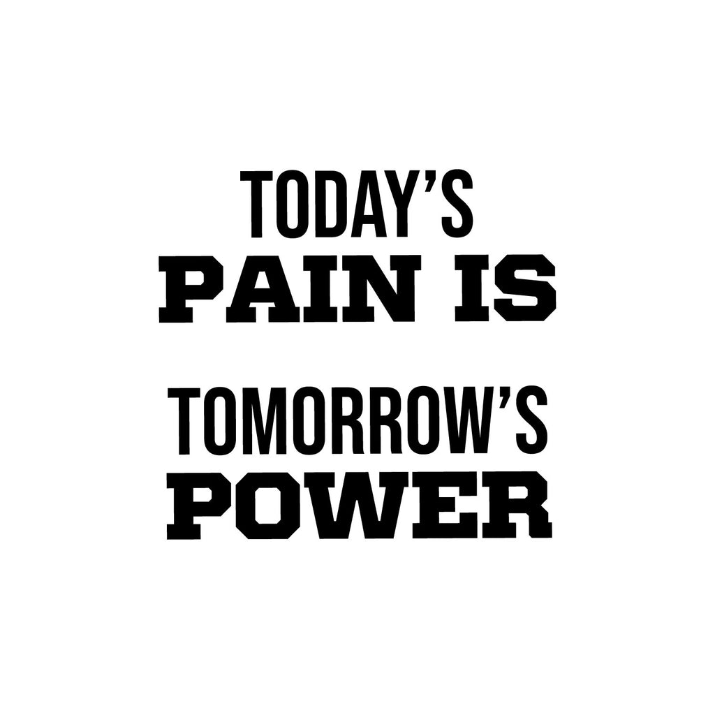 This motivational decal quote "Today's Pain Is Tomorrow's Power"; is the perfect touch for your fitness center or home. Use it for your wellness clinic; healthy center; storefront or anywhere you want to bring some extra positive decoration. It's a vinyl sticker that is easy to put on any smooth and dry surface. Our modern designs don't just brighten up the room; but brighten up the day. Using top of the line vinyl across all of our production allows us to be the leaders in quality and design.