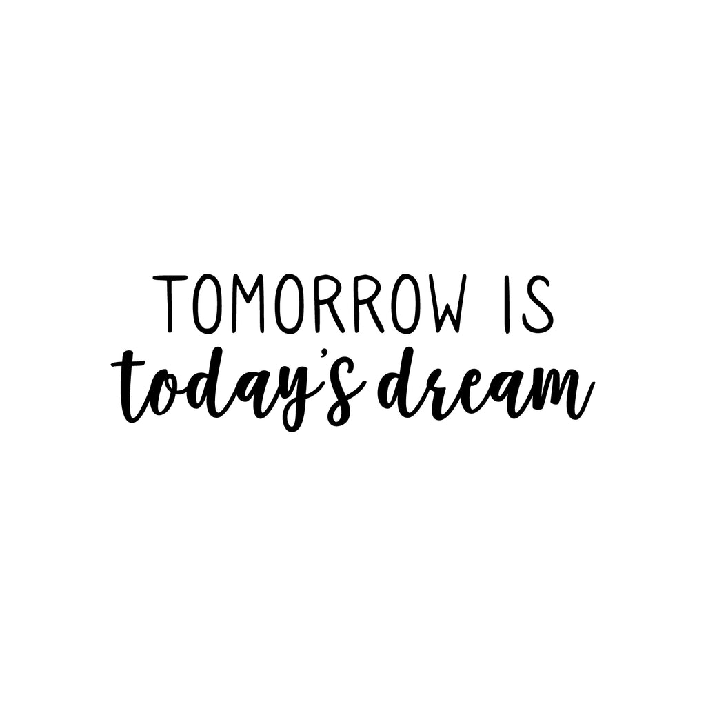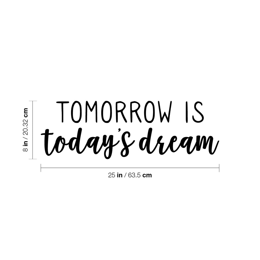 This awesome motivational decal quote "Tomorrow Is Today's Dream"; is the perfect touch for your home or school. Use it for your living room; playroom; kids room or anywhere you want to bring some extra cute decoration. It's a vinyl sticker that is easy to put on any smooth and dry surface. Our modern designs don't just brighten up the room; but brighten up the day. Using top of the line vinyl across all of our production allows us to be the leaders in quality and design.