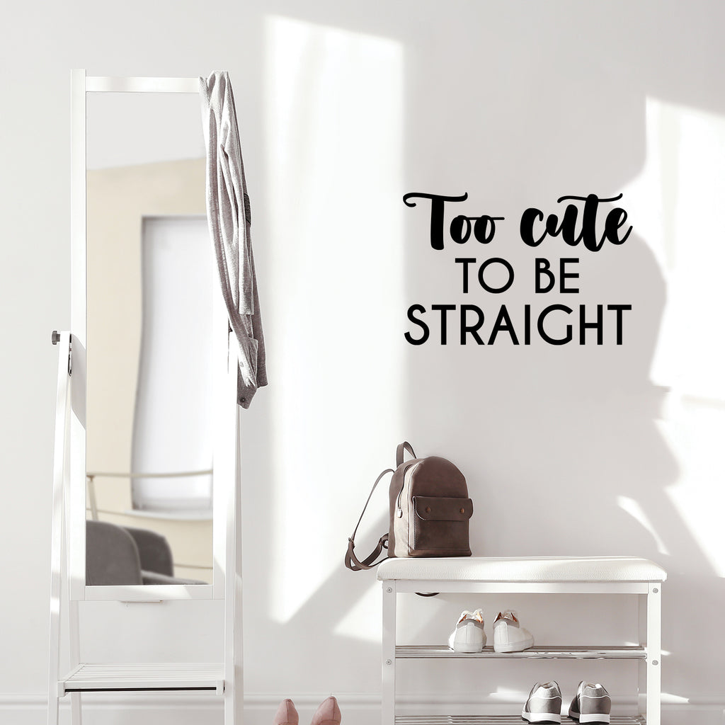 This awesome inspiring & funny decal quote "Too Cute To Be Straight"; is the perfect touch for your home or business. Use it for your office; living room; coffee shop or anywhere you want to bring some extra positive decoration. It's a vinyl sticker that is easy to put on any smooth and dry surface. Our modern designs don't just brighten up the room; but brighten up the day. Using top of the line vinyl across all of our production allows us to be the leaders in quality and design.