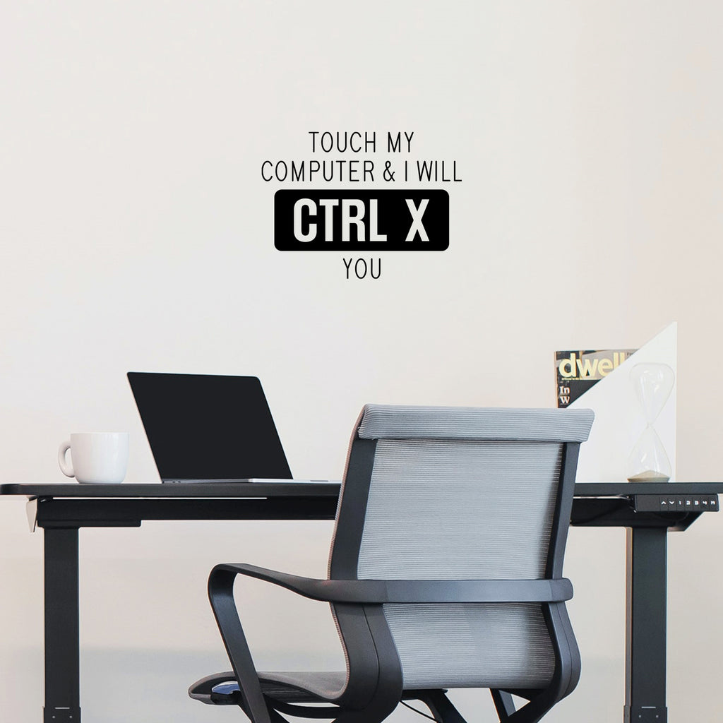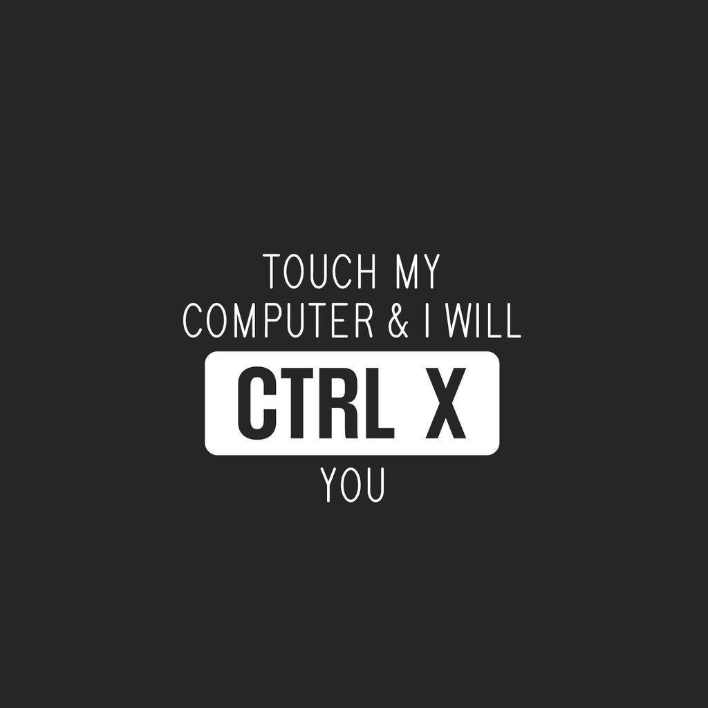 This awesome funny & sarcastic decal quote "Touch My Computer & I Will CTRL X You"; is the perfect touch for your home or office. Use it for your storefront; coffee shop or anywhere you want to bring some extra funny decoration. It's a vinyl sticker that is easy to put on any smooth and dry surface. Our modern designs don't just brighten up the room; but brighten up the day. Using top of the line vinyl across all of our production allows us to be the leaders in quality and design.