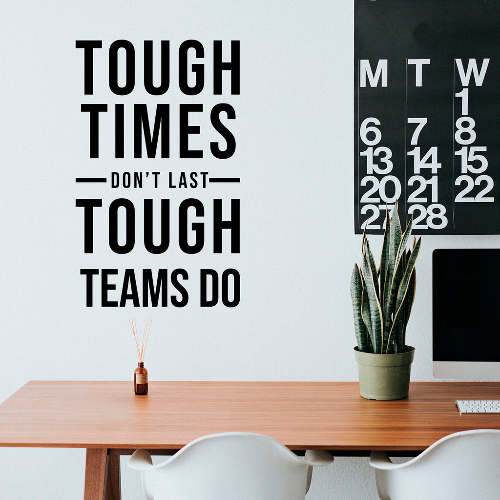 This awesome motivational decal quote "Tough Times Don't Last Tough Teams Do"; is the perfect touch for your home or work. Use it for your dorm room; office or anywhere you want to bring some extra girly decoration. It's a vinyl sticker that is easy to put on any smooth and dry surface. Our modern designs don't just brighten up the room; but brighten up the day. Using top of the line vinyl across all of our production allows us to be the leaders in quality and design.