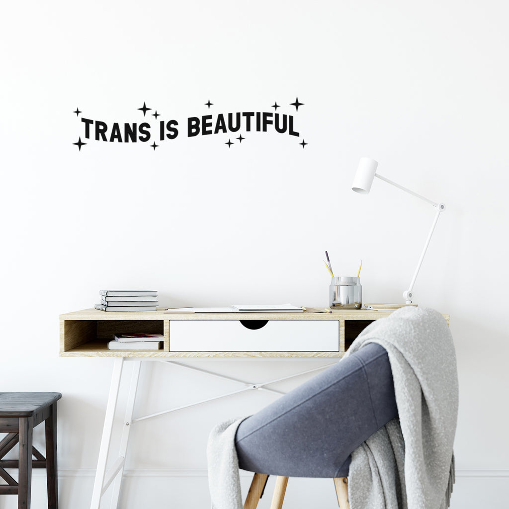 This awesome inspirational optimistic decal quote "Trans Is Beautiful"; is the perfect touch for your home or business. Use it for your office; living room; school or anywhere you want to bring some extra positive decoration. It's a vinyl sticker that is easy to put on any smooth and dry surface. Our modern designs don't just brighten up the room; but brighten up the day. Using top of the line vinyl across all of our production allows us to be the leaders in quality and design.