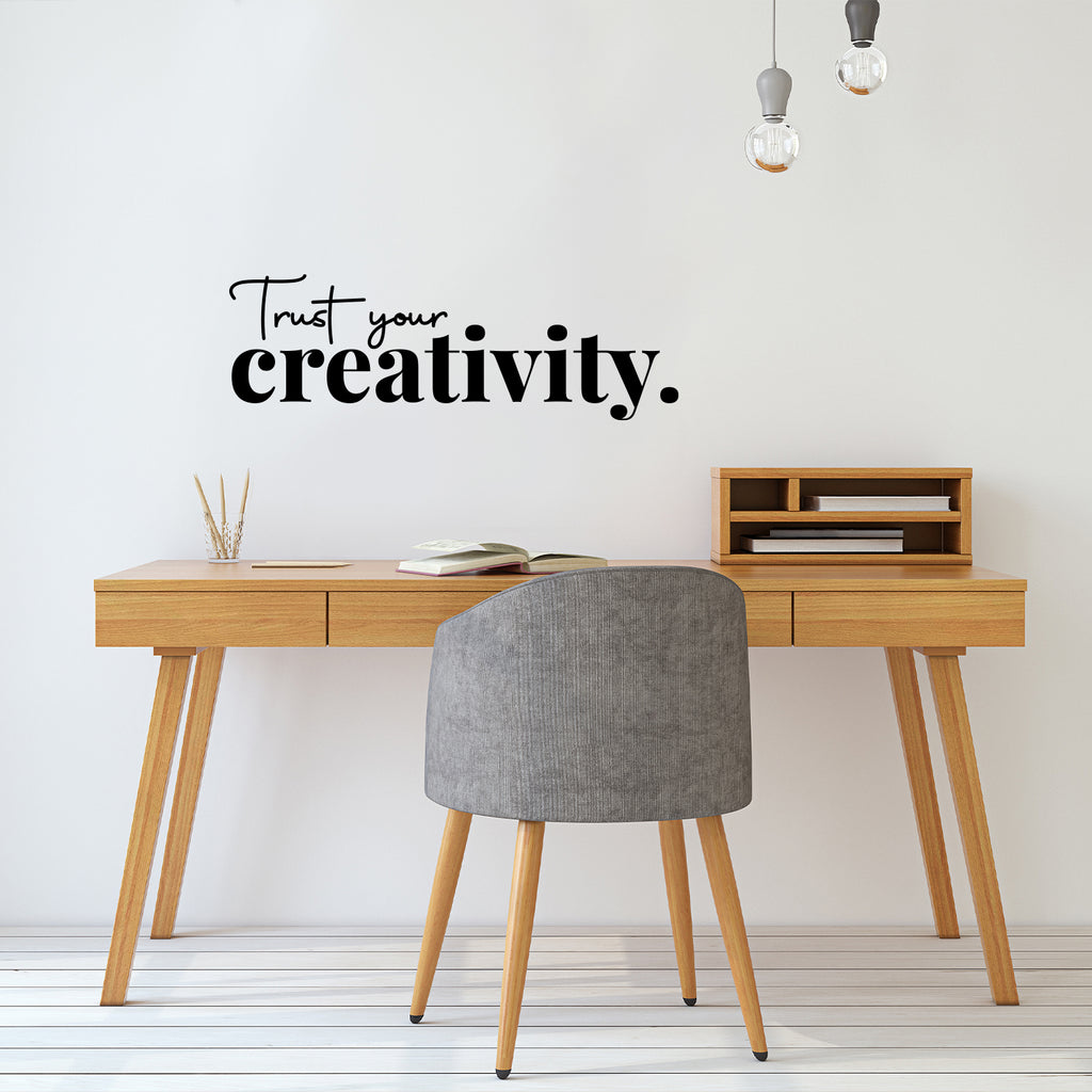 This awesome positive & motivational decal quote "Trust Your Creativity" is the perfect touch for your home or school. Use it for your playroom; living room; office or anywhere you want to bring some extra cute decoration. It's a vinyl sticker that is easy to put on any smooth and dry surface. Our modern designs don't just brighten up the room; but brighten up the day. Using top of the line vinyl across all of our production allows us to be the leaders in quality and design.