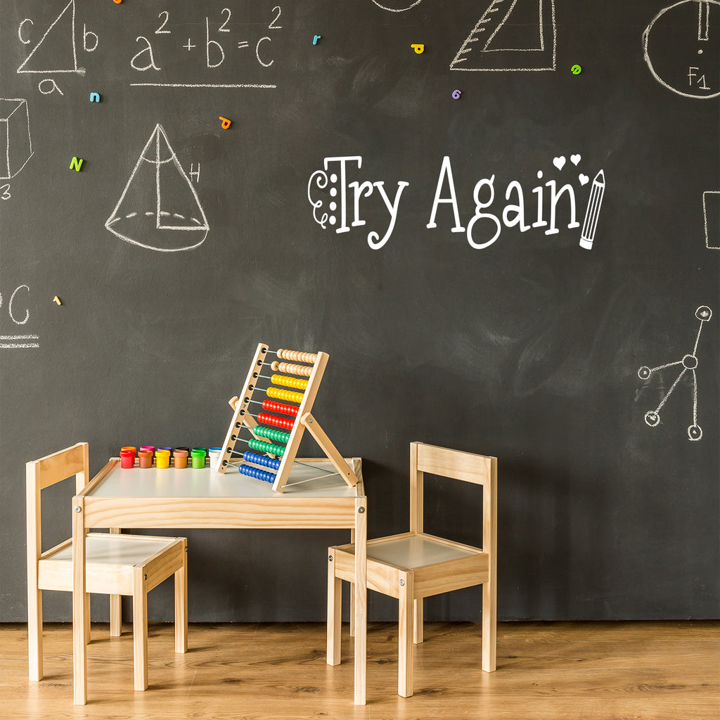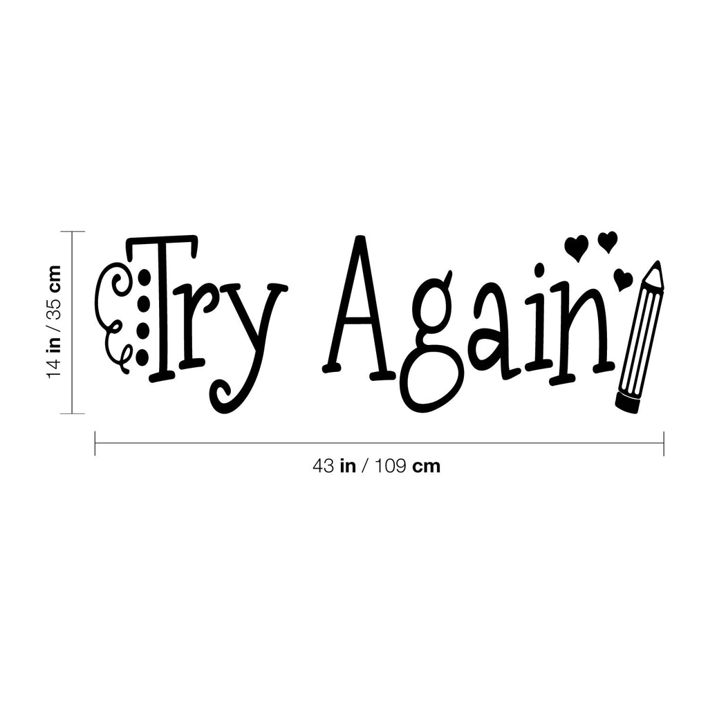 Vinyl Wall Art Decal - Try Again - Trendy Motivational Positive Good Vibes Quote Sticker For Bedroom Living Room School Classroom Kindergarten Daycare Coffee Shop Decor