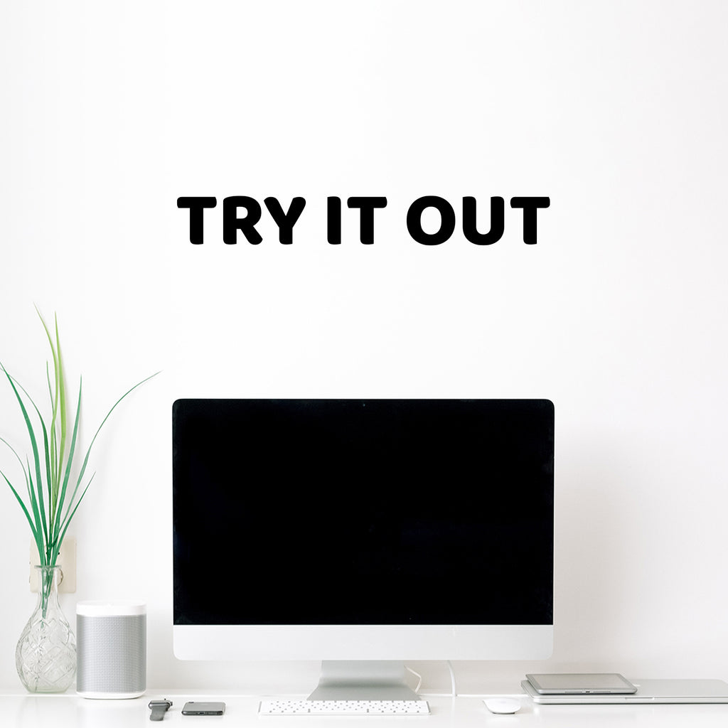 This awesome inspirational decal quote "Try It Out"; is the perfect touch for your home or classroom. Use it for your home school; living room; office or anywhere you want to bring some extra decoration. It's a vinyl sticker that is easy to put on any smooth and dry surface. Our modern designs don't just brighten up the room; but brighten up the day. Using top of the line vinyl across all of our production allows us to be the leaders in quality and design.