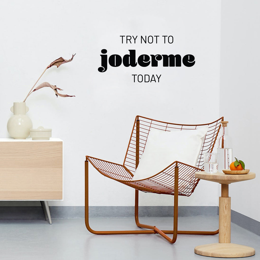 This awesome funny & sarcastic decal quote "Try Not To Joderme Today"; is the perfect touch for your home or office. Use it for your store; coffee shop or anywhere you want to bring some extra fun decoration. It's a vinyl sticker that is easy to put on any smooth and dry surface. Our modern designs don't just brighten up the room; but brighten up the day. Using top of the line vinyl across all of our production allows us to be the leaders in quality and design.