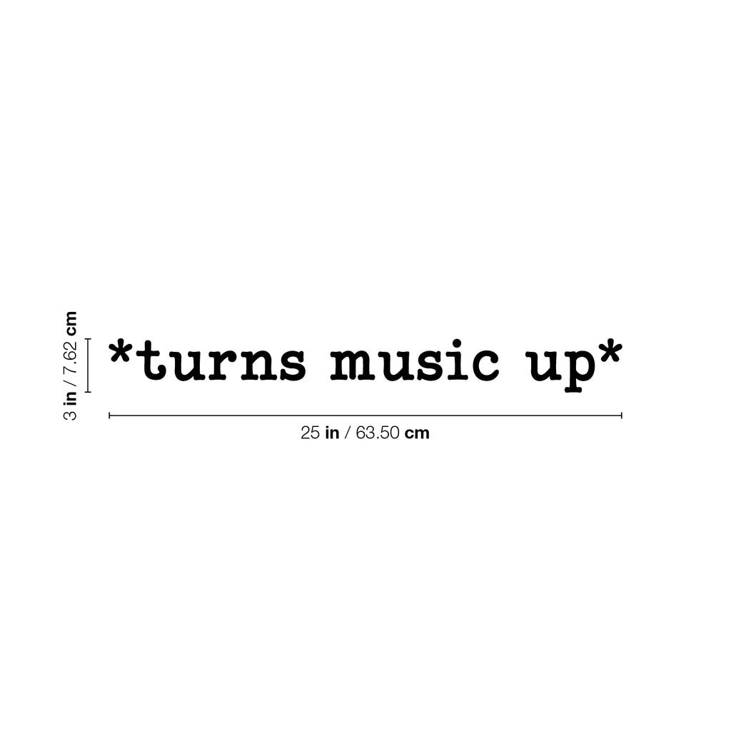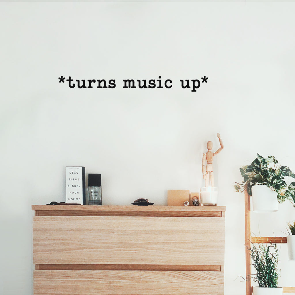 This awesome fun positive decal quote "*Turns Music Up*"; is the perfect touch for your school or office. Use it for your make up mirror; bathroom; business or anywhere you want to bring some extra positive decoration. It's a vinyl sticker that is easy to put on any smooth and dry surface. Our modern designs don't just brighten up the room; but brighten up the day. Using top of the line vinyl across all of our production allows us to be the leaders in quality and design.