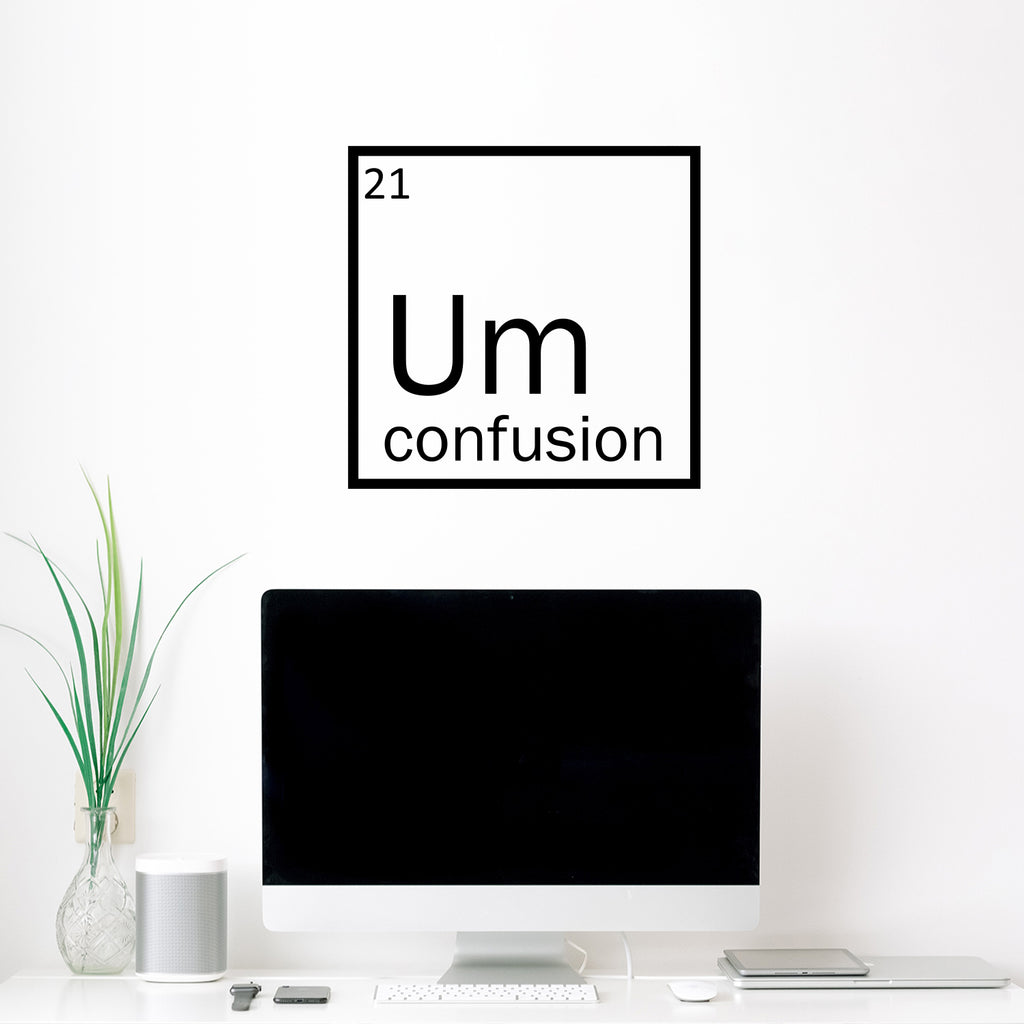 This optimistic decal quote "Um Confusion"; is the perfect touch for your school or office. Use it for your living room; classroom; playroom or anywhere you want to bring some extra positive decoration. It's a vinyl sticker that is easy to put on any smooth and dry surface. Our modern designs don't just brighten up the room; but brighten up the day. Using top of the line vinyl across all of our production allows us to be the leaders in quality and design.