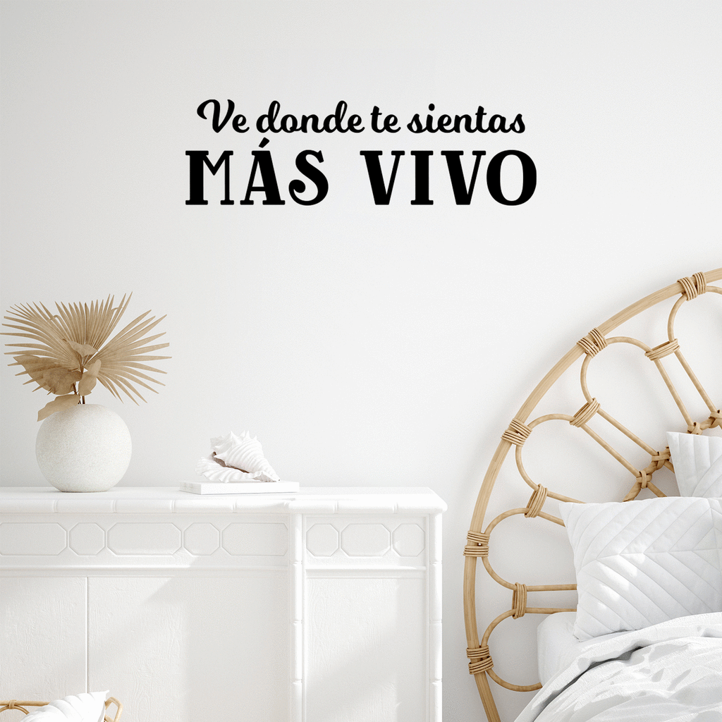 This modern motivational decal quote "Ve Donde Te Sientas Más Vivo / Go Where You Feel Alive"; is the perfect touch for your office or classroom. Use it for your living room; school; coffee shop or anywhere you want to bring some extra positive decoration. It's a vinyl sticker that is easy to put on any smooth and dry surface. Our modern designs don't just brighten up the room; but brighten up the day. Using top of the line vinyl across all of our production allows us to be the leaders in quality and design.