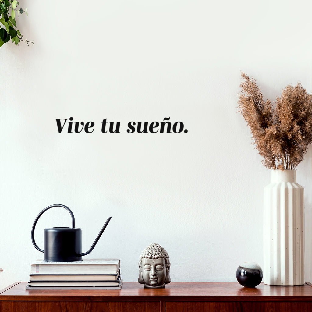 This awesome positive decal quote "Vive Tu Sueño / Live Your Dream"; is the perfect touch for your home or office. Use it for your school; living room or anywhere you want to bring some extra optimistic decoration. It's a vinyl sticker that is easy to put on any smooth and dry surface. Our modern designs don't just brighten up the room; but brighten up the day. Using top of the line vinyl across all of our production allows us to be the leaders in quality and design.