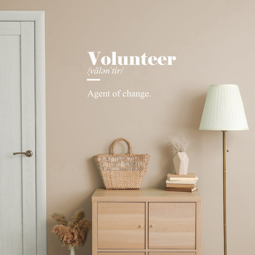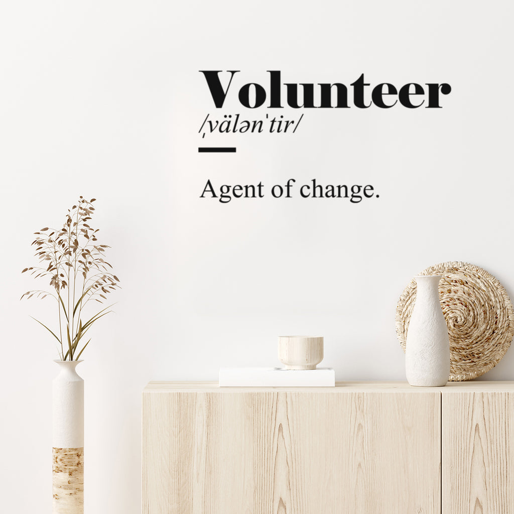This awesome motivational decal quote "Volunteer. Agent Of Change"; is the perfect touch for your home or school. Use it for your living room; playroom; kids room or anywhere you want to bring some extra cute decoration. It's a vinyl sticker that is easy to put on any smooth and dry surface. Our modern designs don't just brighten up the room; but brighten up the day. Using top of the line vinyl across all of our production allows us to be the leaders in quality and design.