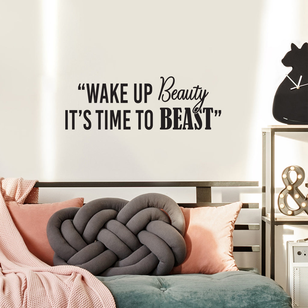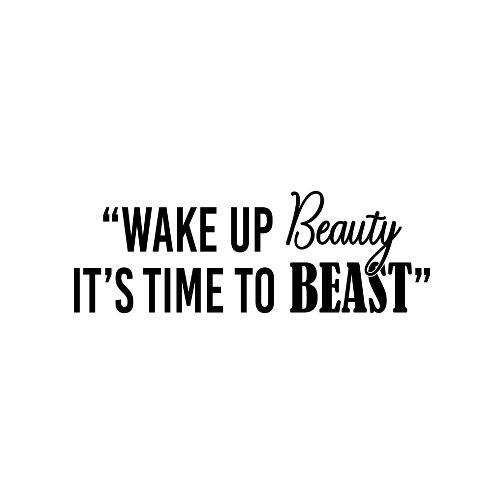 This awesome positive decal quote "Wake Up Beauty It's Time To Beast"; is the perfect touch for your fitness center or home. Use it for your mirrors; workout room; fitness center or anywhere you want to bring some extra positive decoration. It's a vinyl sticker that is easy to put on any smooth and dry surface. Our modern designs don't just brighten up the room; but brighten up the day. Using top of the line vinyl across all of our production allows us to be the leaders in quality and design.
