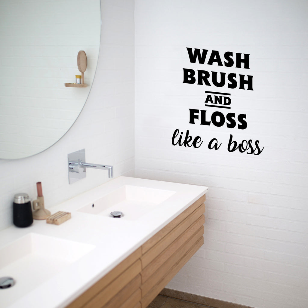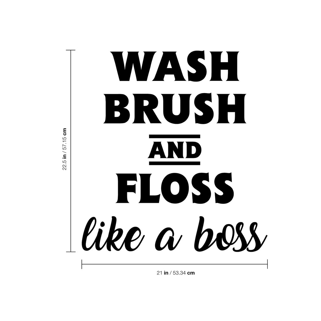 Vinyl Wall Art Decal - Wash Brush And Floss Like A Boss - 22. Modern Household Home Bathroom Decoration Quote - Fun Indoor Wall Apartment Door Decor