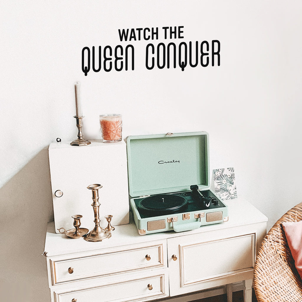 This awesome decal quote "Watch The Queen Conquer"; is the perfect touch for your home or work. Use it for your dorm room; home office or anywhere you want to bring some extra decoration. It's a vinyl sticker that is easy to put on any smooth and dry surface. Our modern designs don't just brighten up the room; but brighten up the day. Using top of the line vinyl across all of our production allows us to be the leaders in quality and design.