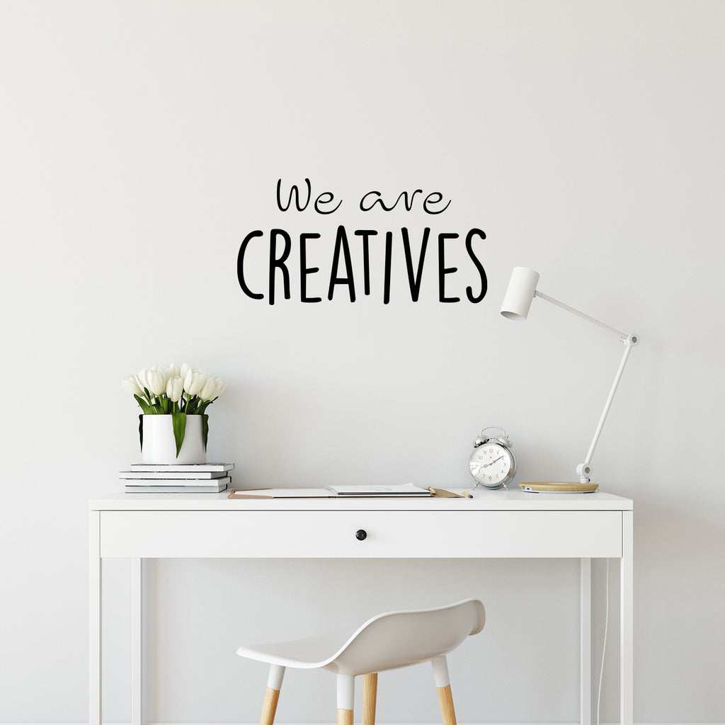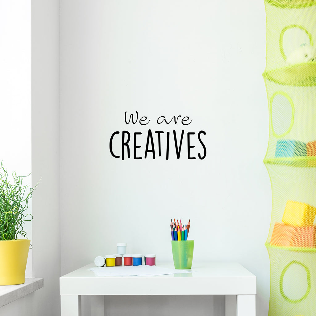 This awesome positive decal quote "We Are Creatives"; is the perfect touch for your school. Use it for your classroom; playroom; office or anywhere you want to bring some extra inspiring decoration. It's a vinyl sticker that is easy to put on any smooth and dry surface. Our modern designs don't just brighten up the room; but brighten up the day. Using top of the line vinyl across all of our production allows us to be the leaders in quality and design.