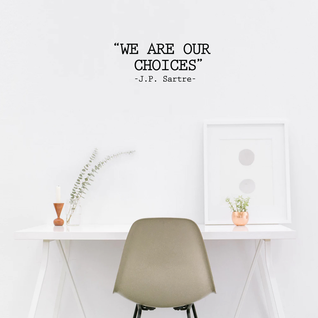 This inspirational "We Are Our Choices - J.P. Sartre" wall art decal is modern and the perfect touch for your home. Use it for your bedroom; living room; or anywhere you want to bring some extra decoration. It's a vinyl sticker that is easy to put on almost any smooth and dry surface. Our motivational designs don't just brighten up the room; but brighten up the day. Using top of the line vinyl across all of our production allows us to be the leaders in quality and design.