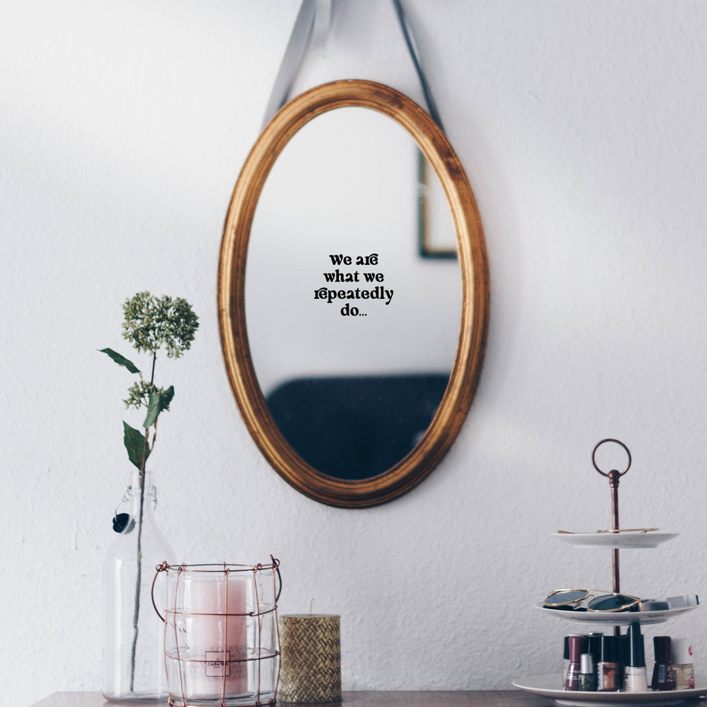 This inspirational decal quote "We Are What We Repeatedly Do"; is the perfect touch for your home. Use it for your car bumpers; laptops; office or anywhere you want to bring some extra cute decoration. It's a vinyl sticker that is easy to put on any smooth and dry surface. Our modern designs don't just brighten up the room; but brighten up the day. Using top of the line vinyl across all of our production allows us to be the leaders in quality and design.