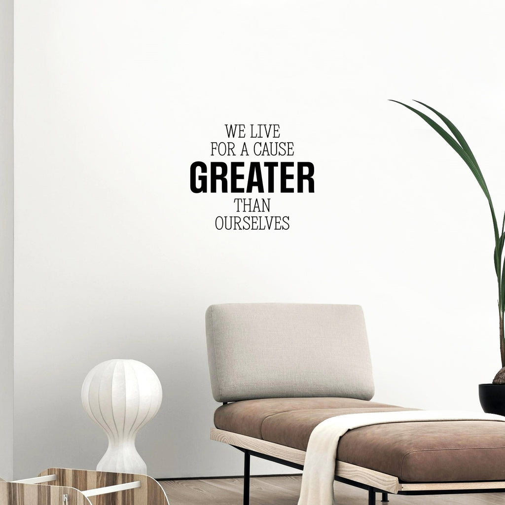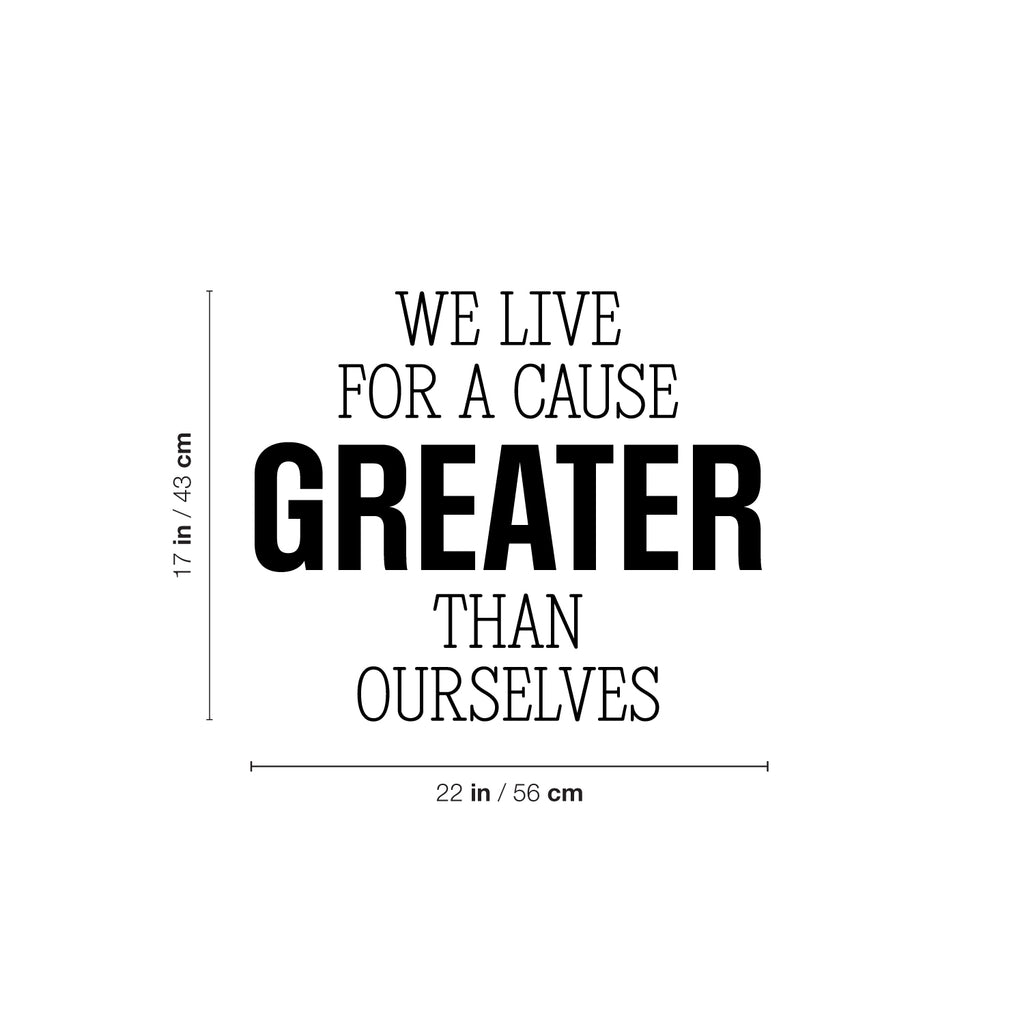 This awesome cute & spiritual decal quote "We Live For A Cause Greater Than Ourselves"; is the perfect touch for your home. Use it for your bedroom; living room or anywhere you want to bring some extra lovely decoration. It's a vinyl sticker that is easy to put on any smooth and dry surface. Our modern designs don't just brighten up the room; but brighten up the day. Using top of the line vinyl across all of our production allows us to be the leaders in quality and design.