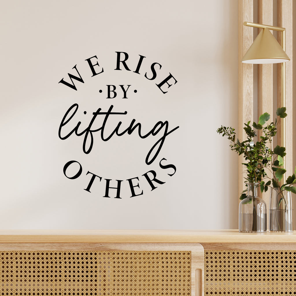 This decal quote "We Rise By Lifting Others"; is the perfect touch for your home. Use it for your dorm room or anywhere you want to bring some extra decoration. It's a vinyl sticker that is easy to put on any smooth and dry surface. Our modern designs don't just brighten up the room; but brighten up the day. Using top of the line vinyl across all of our production allows us to be the leaders in quality and design.