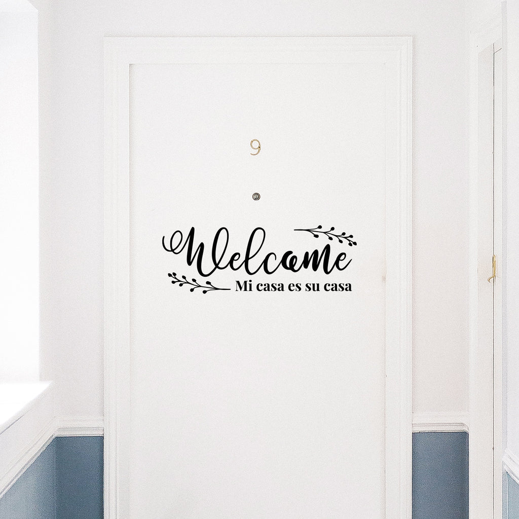 This awesome lovely & inspiring decal quote "Welcome Mi Casa Es Su Casa"; is the perfect touch for your home. Use it for your family room; windows; doors or anywhere you want to bring some extra cute decoration. It's a vinyl sticker that is easy to put on any smooth and dry surface. Our modern designs don't just brighten up the room; but brighten up the day. Using top of the line vinyl across all of our production allows us to be the leaders in quality and design.