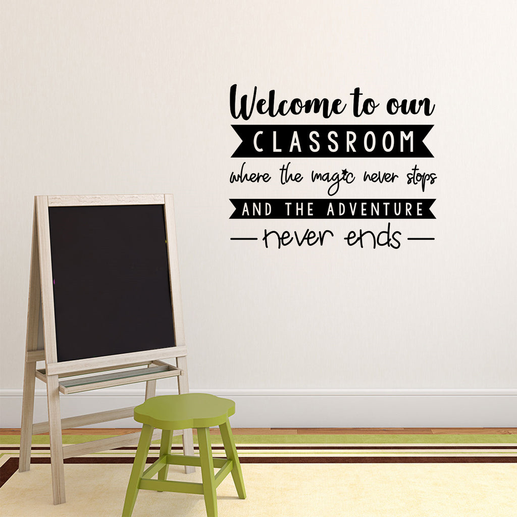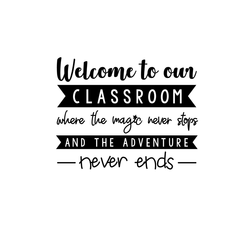 This awesome fun inspiring decal quote "Welcome To Our Classroom" ; is the perfect touch for your home or school. Use it for your living room; playroom; kids room or anywhere you want to bring some extra funny decoration. It's a vinyl sticker that is easy to put on any smooth and dry surface. Our modern designs don't just brighten up the room; but brighten up the day. Using top of the line vinyl across all of our production allows us to be the leaders in quality and design.