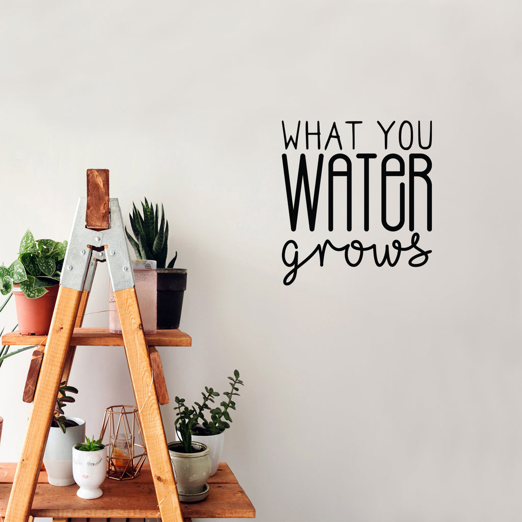 This awesome optimistic decal quote "What You Water Grows"; is the perfect touch for your home or office. Use it for your garden; living room; office or anywhere you want to bring some extra optimistic decoration. It's a vinyl sticker that is easy to put on any smooth and dry surface. Our modern designs don't just brighten up the room; but brighten up the day. Using top of the line vinyl across all of our production allows us to be the leaders in quality and design.